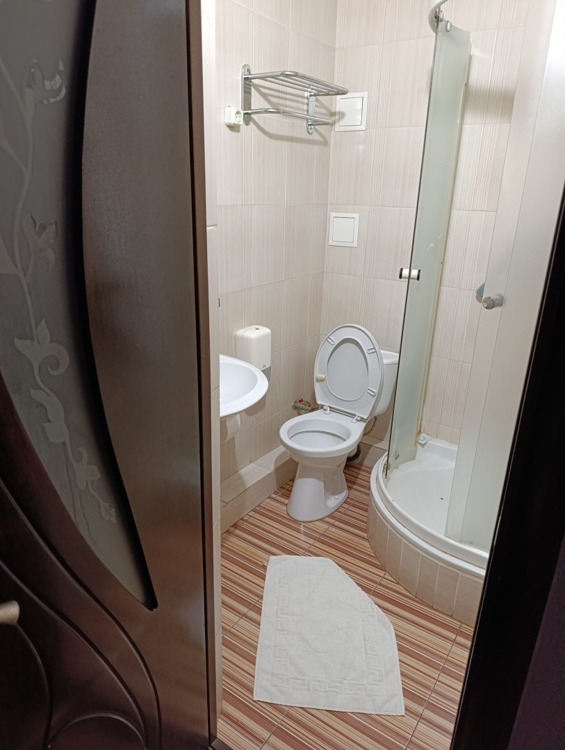 Из недостатков: лейка душа под напором воды поднималась и вода с лейки лилась за пределы душевой кабины. Поэтому лейку пришлось держать в руках, что было не удобно. Не было фена. Телевизор не работал.