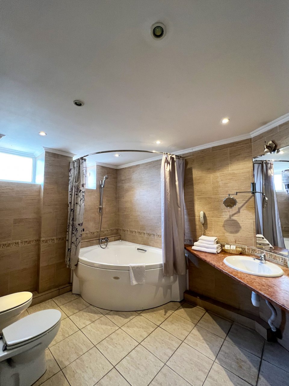 Комплекс впечатляет масштабами и современным дизайном. Санузел — отдельная гордость отеля душевая кабина, халаты, тапочки, премиальная косметика. Завтрак обширный шведский стол с блюдами на любой вкус от омлетов до десертов.