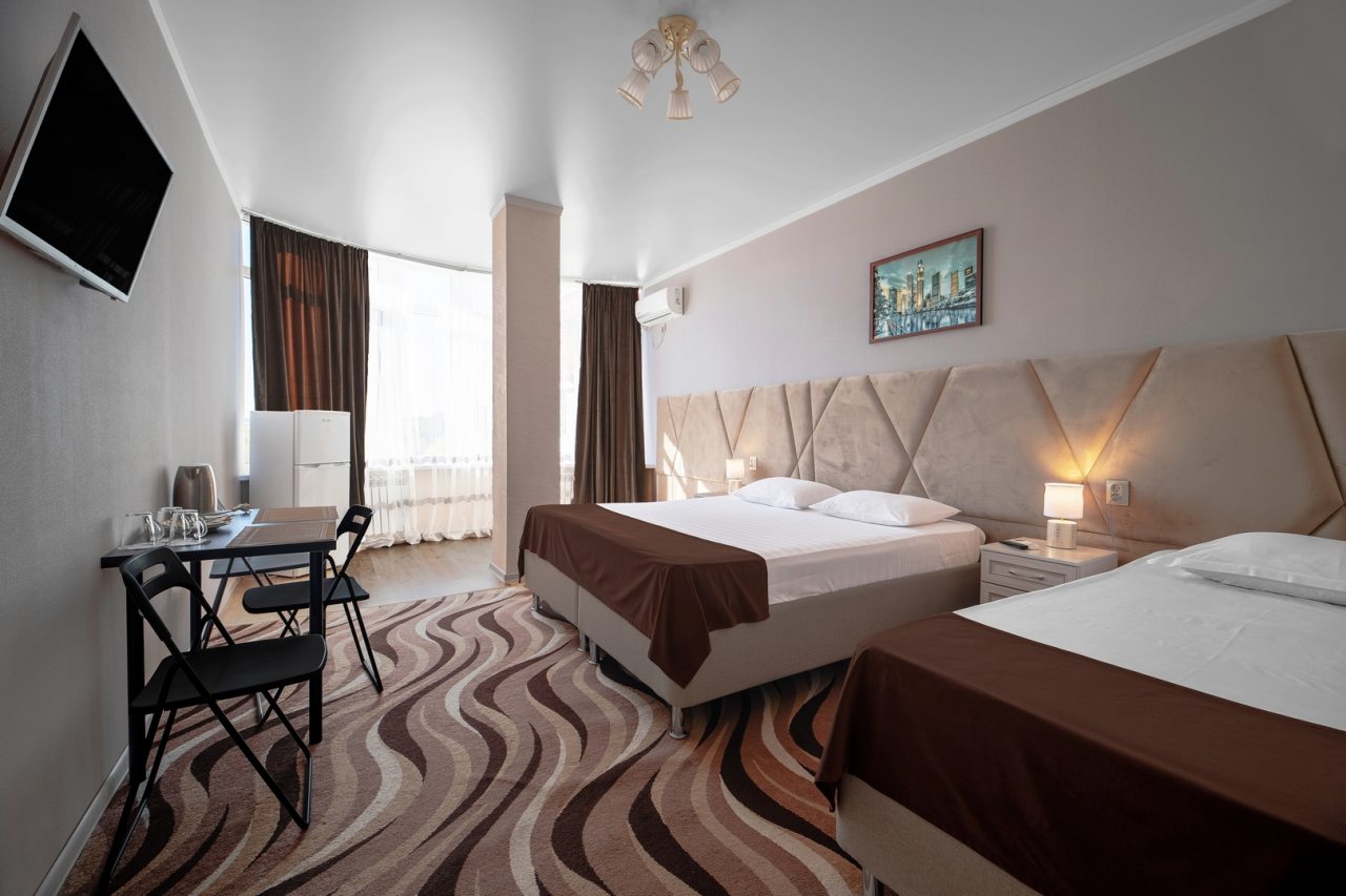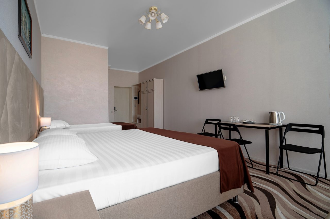 Встретили поздно ночью, очень быстро заселили. В номере идеальная чистота, растворимый кофе, чай, сахар, чайник. Полотенца на каждого по 3шт, уровень отеля намного выше ценника! В следующий раз при поездке в Краснодар, только сюда!