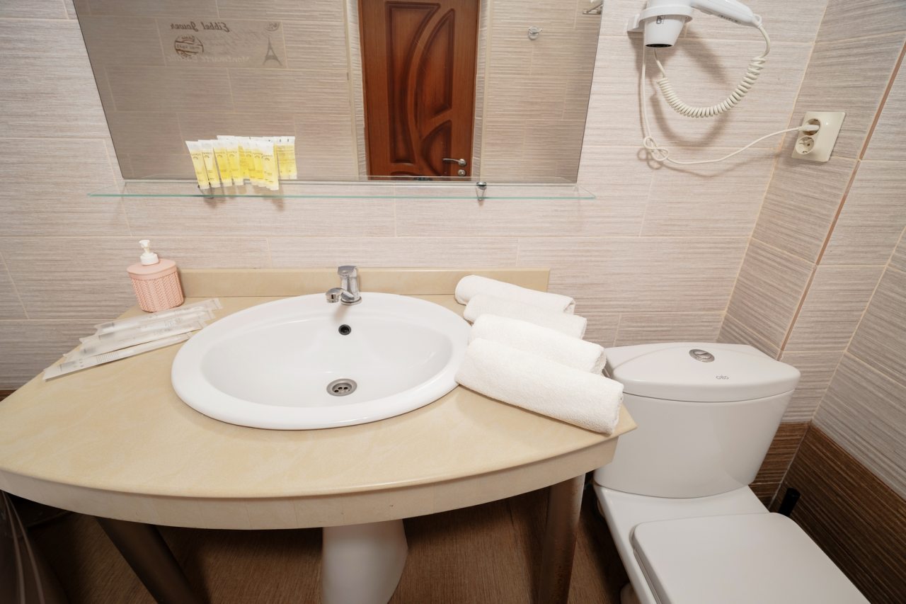 Номер был просторный и чистый, для 3-х человек было хорошо. В ванной на каждого косметические принадлежности.