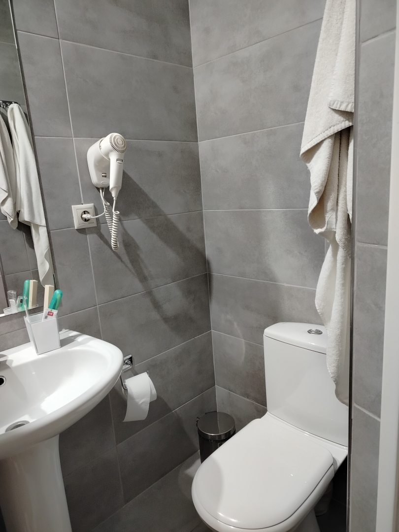 У нас был просторный номер с балконом. В номере халаты, тапочки.