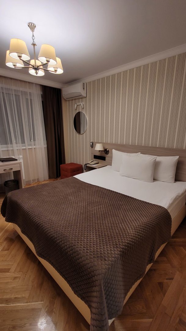 Номера не большие, но чистые. Убирают хорошо, всегда добавляют бутылочки с водой и чай с сахаром :) Расположение отличное, рядом фонтаны и набережная. Много ресторанов вокруг и есть столовая за гостиницей. Всё понравилось, рекомендую!