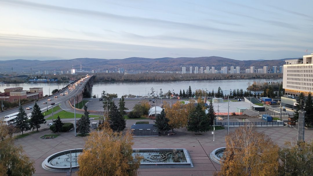 Отличное расположение гостиницы в центре города. Прекрасный вид на реку Енисей и Коммунальный мост. Есть трансфер из аэропорта.