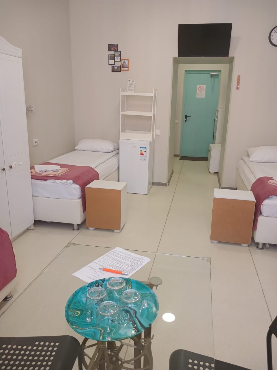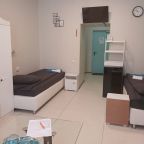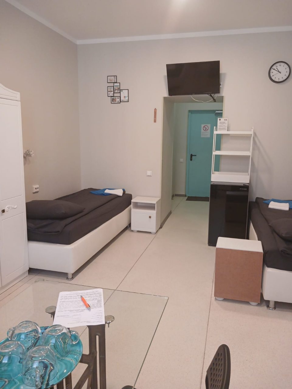 Чтобы легче найти отель вход в здание там где Магнит, подняться по лестнице на 2 этаж, там на двери контактный телефон. Парковка на улице, внимательно смотреть на знаки, места есть. Кофе аппарат для постояльцев это бомба, вкусно, разнообразно. Есть кулер, микроволновка в холле. Номер 6 на 6 человек, 2 комнаты с раздельной дверью по 3 односпальные кровати, в одной комнате душ и туалет, в другой туалет. Есть фен. Душ нормальный.