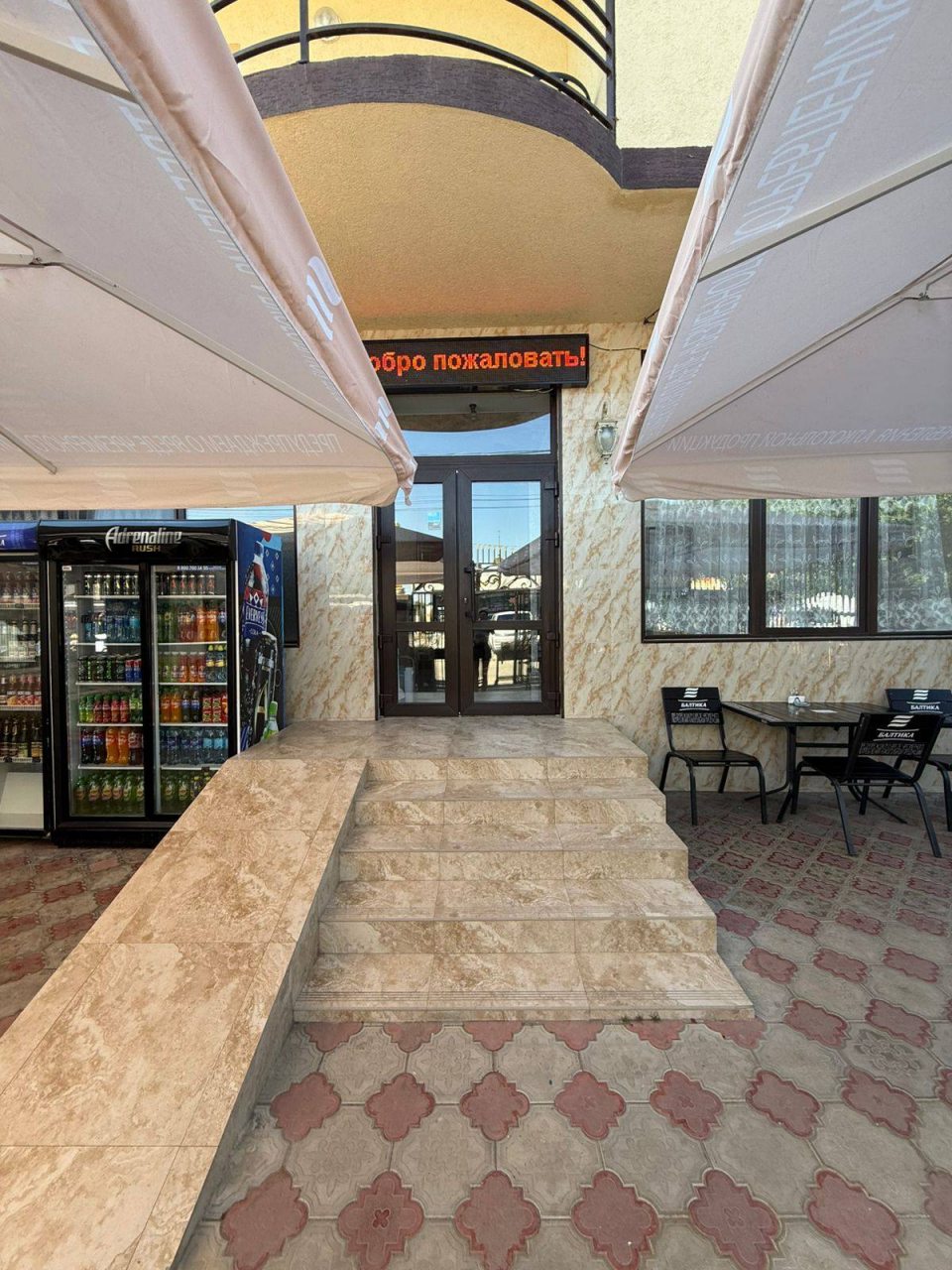 Гостевой дом красивый и комфортабельный. Территория охраняемая, закрытая. Помещение достаточно большое, в нем красивая отделка в номерах и в коридорах. Пляж находится рядом, но при желании можно искупаться и в бассейне, что расположен на территории. Место тихое спокойное. Много магазинов рядом, нам понравилось.