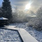 Мы остались довольны. Забронировали панорамный коттедж с сауной на одну ночь. Коттедж оказался новым и чистым. Был доступен мангал, так что устроили шашлыки. Территория отеля большая, местами видны признаки износа, но в целом все неплохо. На территории есть озеро с лебедями. Также имеется большой пирс с различными развлечениями. Нам действительно понравилось, и мы пожалели, что остановились всего на одну ночь. Хотелось бы вернуться сюда зимой.