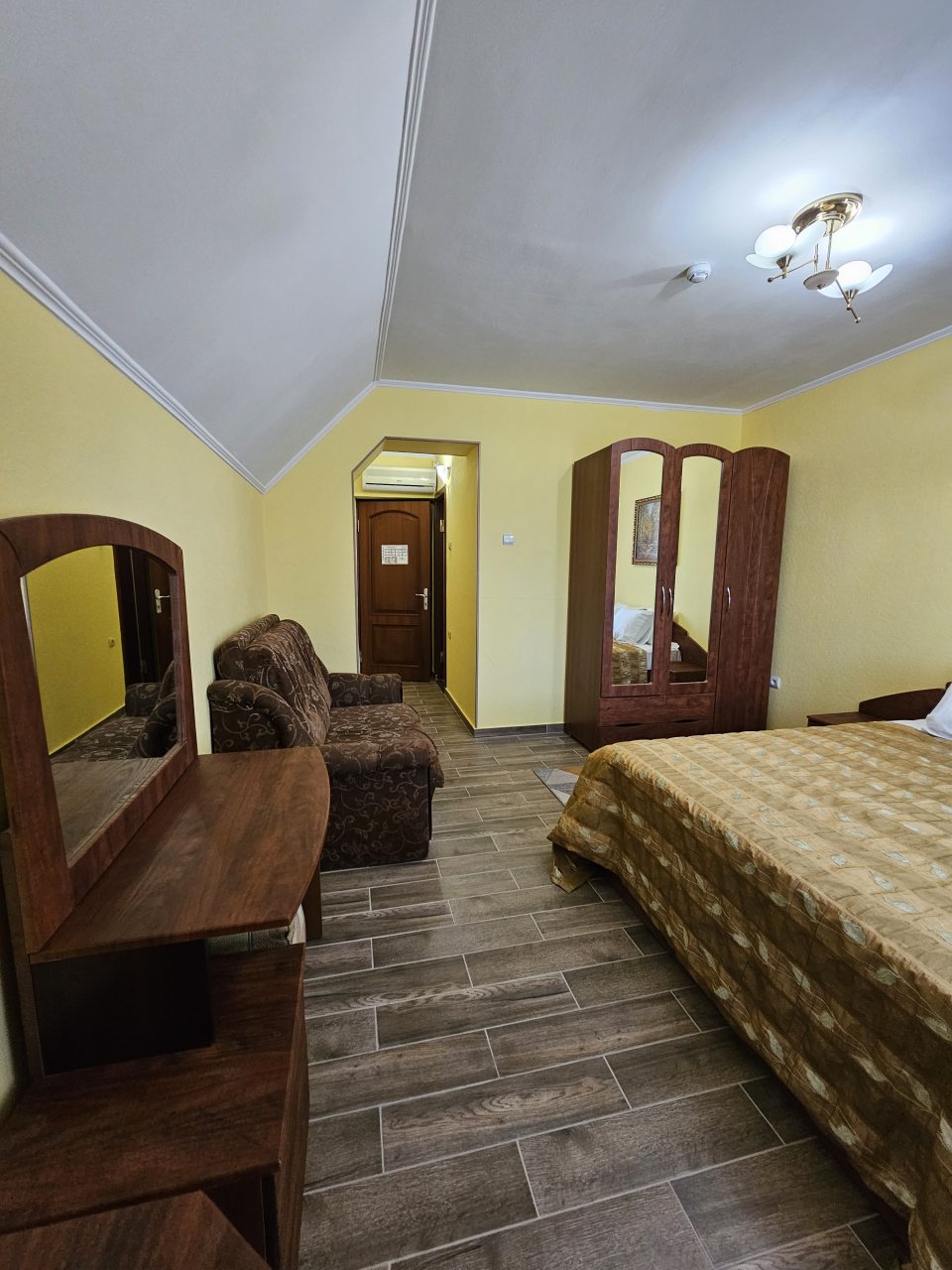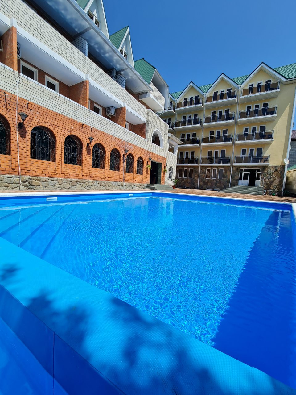 Хорошее месторасположение, до моря минут 10-15 прогулочным шагом, парк развлечений рядом, детям в радость, своя столовая, кормят отлично. Номер достался эконом, ничего больше на наши даты уже не было, для отдыха вдвоем нормально, один минус, подниматься на четвертый этаж, но в принципе тоже не критично. Несмотря на близость парка в номере было тихо. В бассейне не купались, хватало моря,. Все устроило, осенью поедем ещё, если будут места.