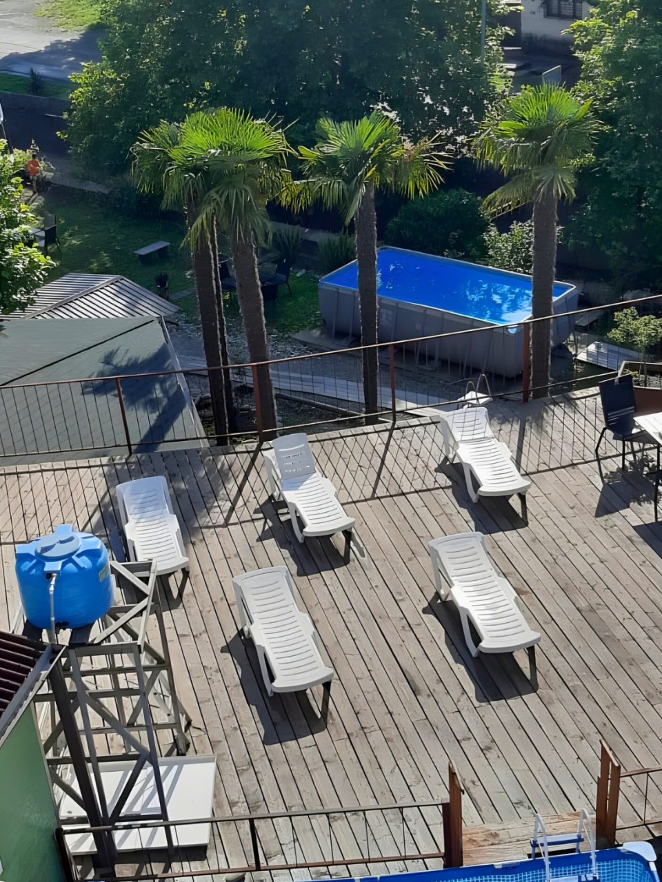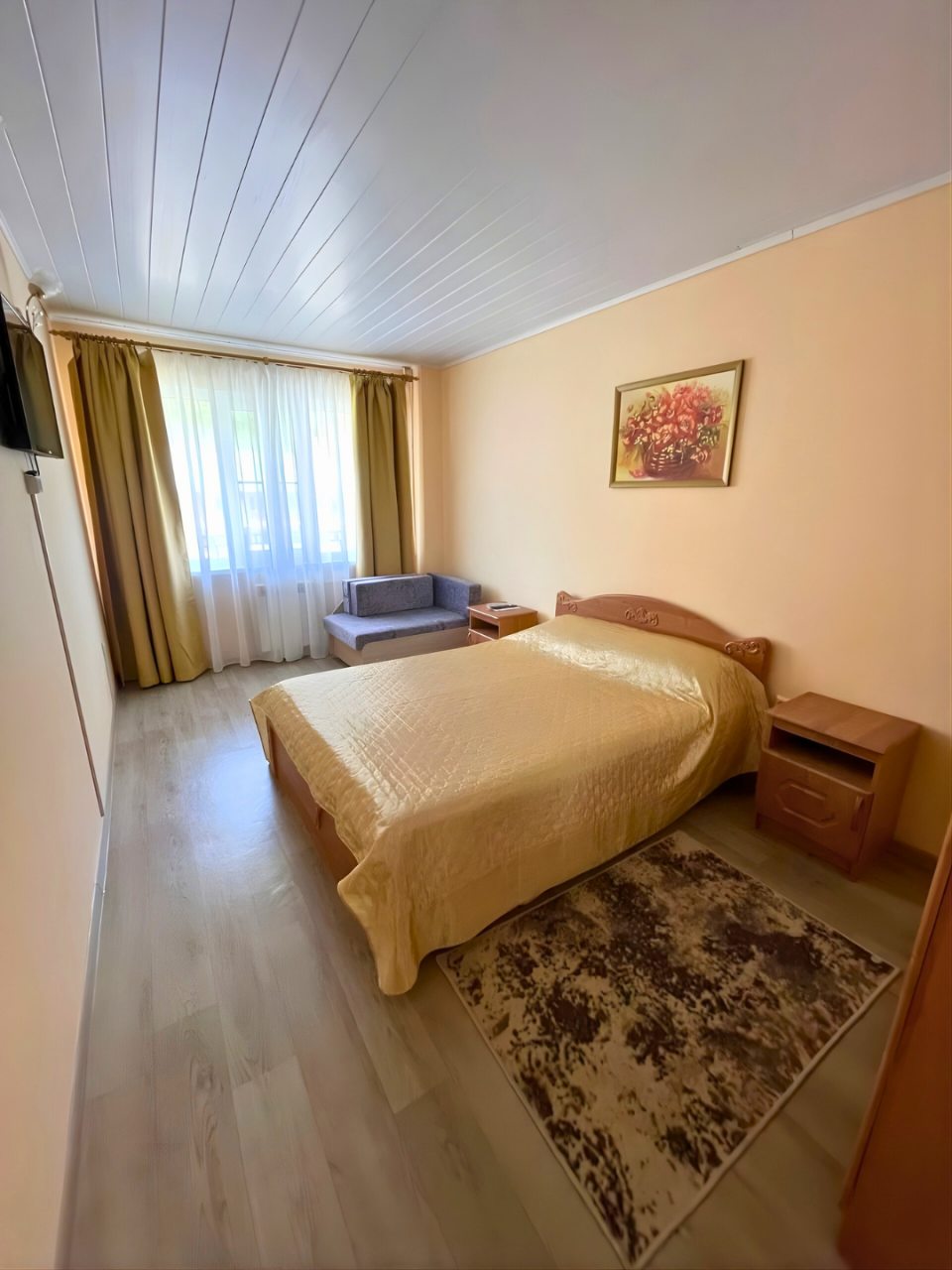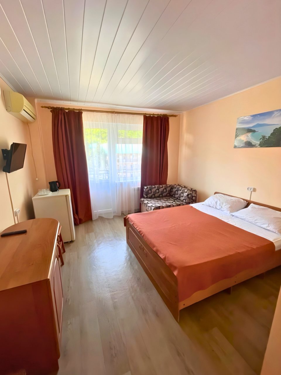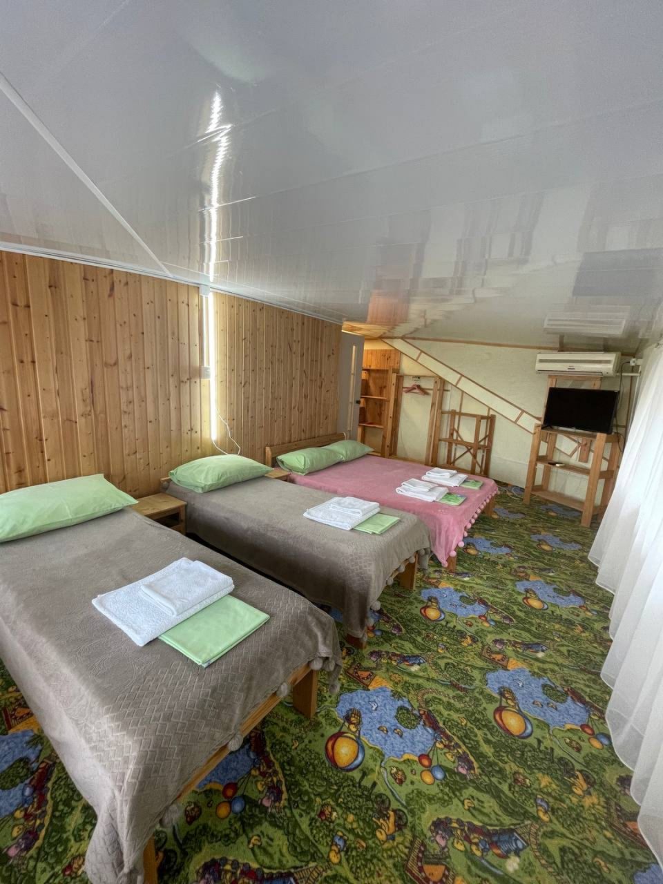 Хороший современный гостевой дом, море рядом но нужно немного прогуляться (минут 7-10). По комфорту в номере все на отлично. Заселялись в трехместный полулюкс, было чисто и прибрано, постельное белье чистое, полотенца, телевизор, шкаф - всё было. Летом работает бассейн. Все супер!