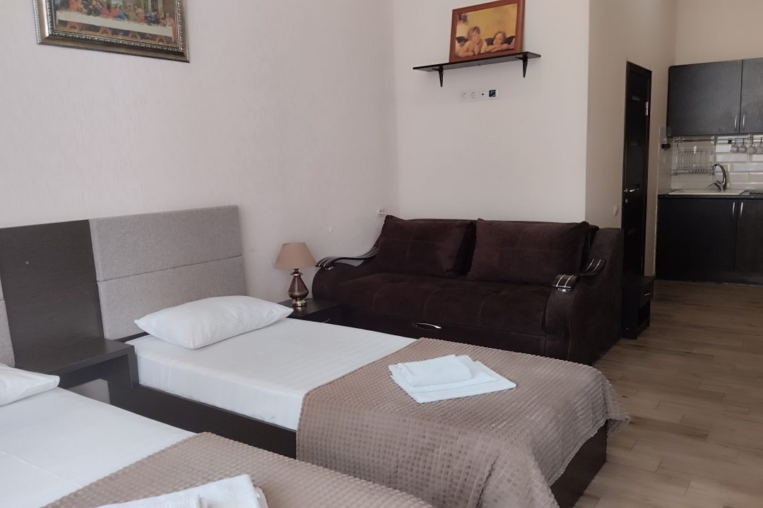 Приехали на отдых с мужем мы в последних днях августа. Категории стандартные, номера чистые и ухоженные. Имеется все необходимое, и оснащение не отличается от фото. Персонал приветливый, на все вопросы отвечает, и все проблемы решаются быстро, если такие возникают. А локация вблизи парка и различных кафешек - просто вау! Есть где погулять, да и до пляжа недалеко. Если еще раз приедем в Лазаревское, то точно выберем гостевой дом Черноморец.