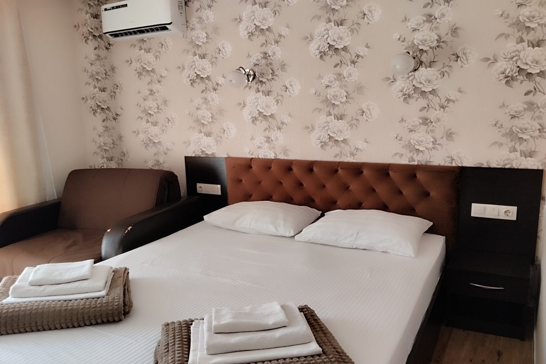 Проживали в отеле несколько дней, за все время не заметили никаких минусов. Море буквально в двух шагах, рядом есть магазины и достопримечательности. В номере холодильник, стол, удобная кровать, телевизор, чайник и прочие принадлежности. В столовой очень вкусно кормят.