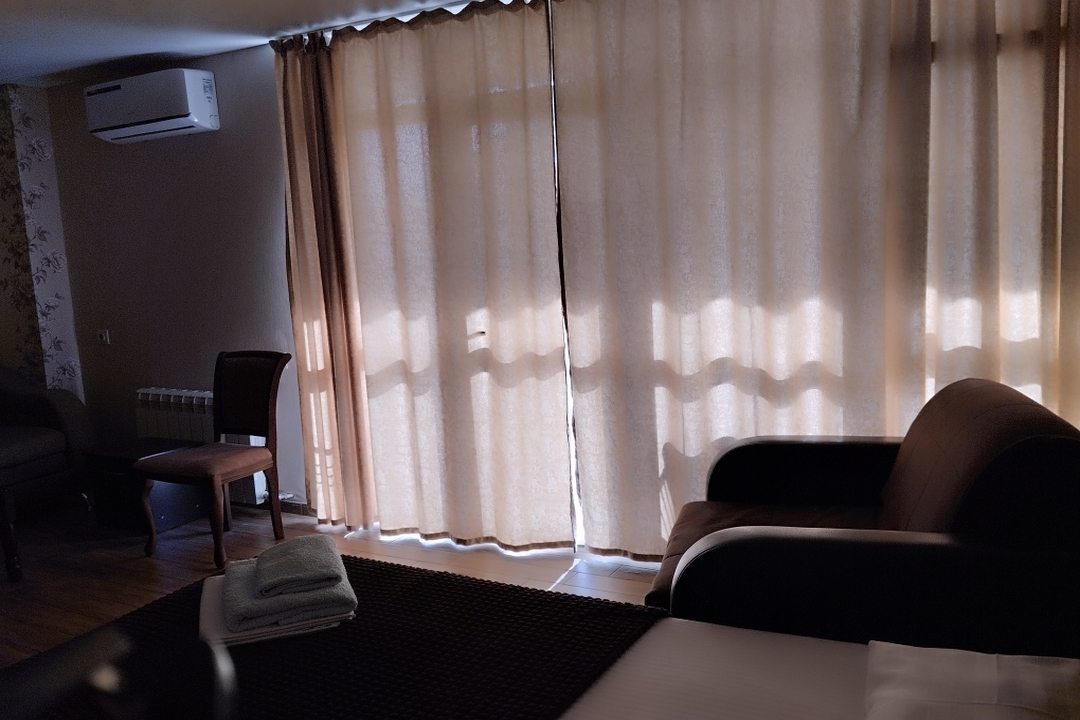 Мне понравился номер. Есть место под хранение чемодана. Мебель в приличном состоянии, удобная и функциональная. Внутренний дворик уютный, ухоженный. Приятно отдохнуть вечером на свежем воздухе за бокалом вина. Хозяева доброжелательные, ненавязчивые.
