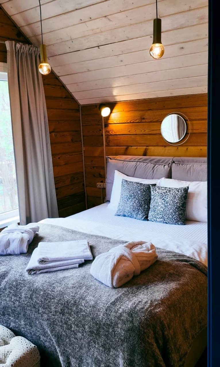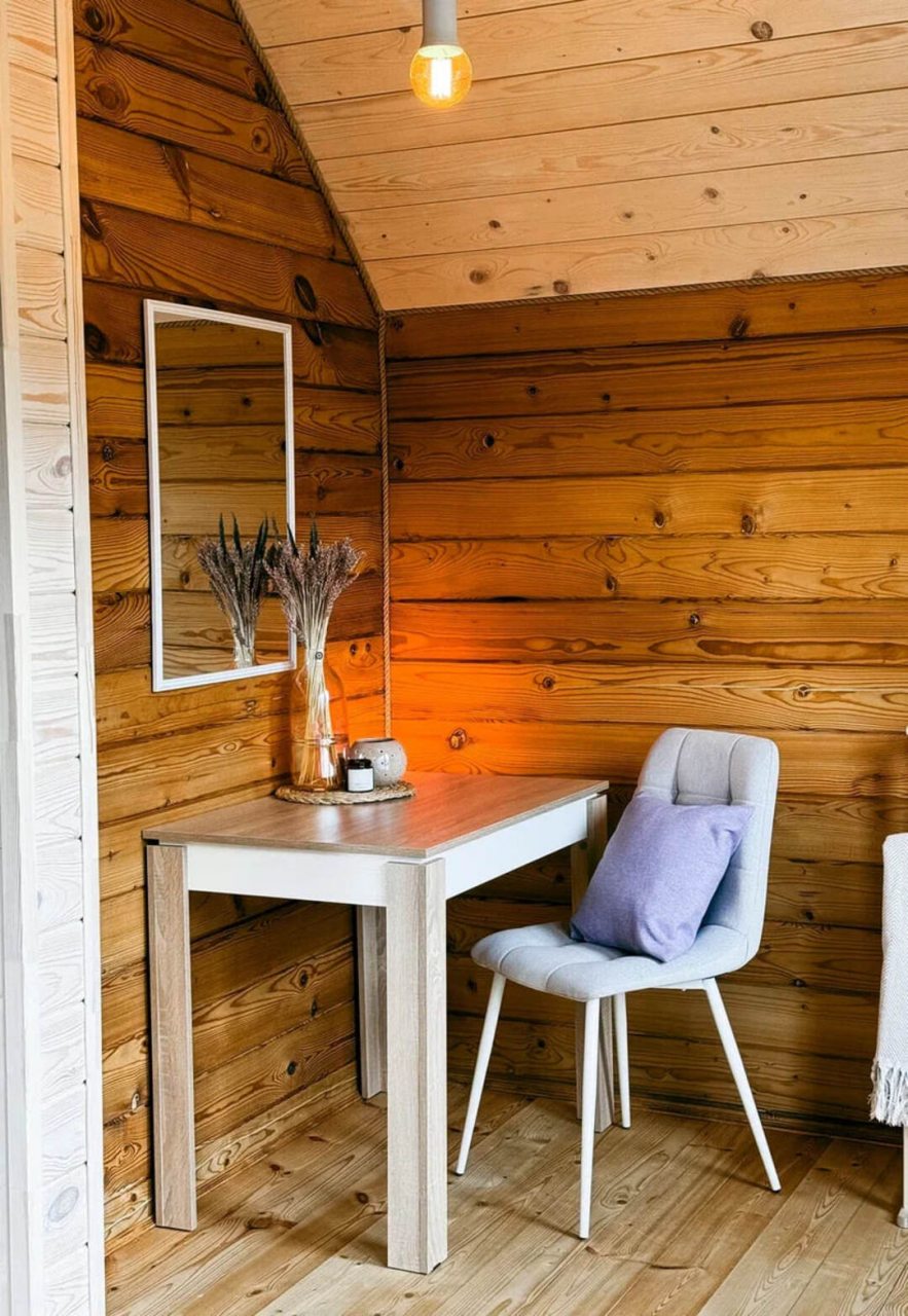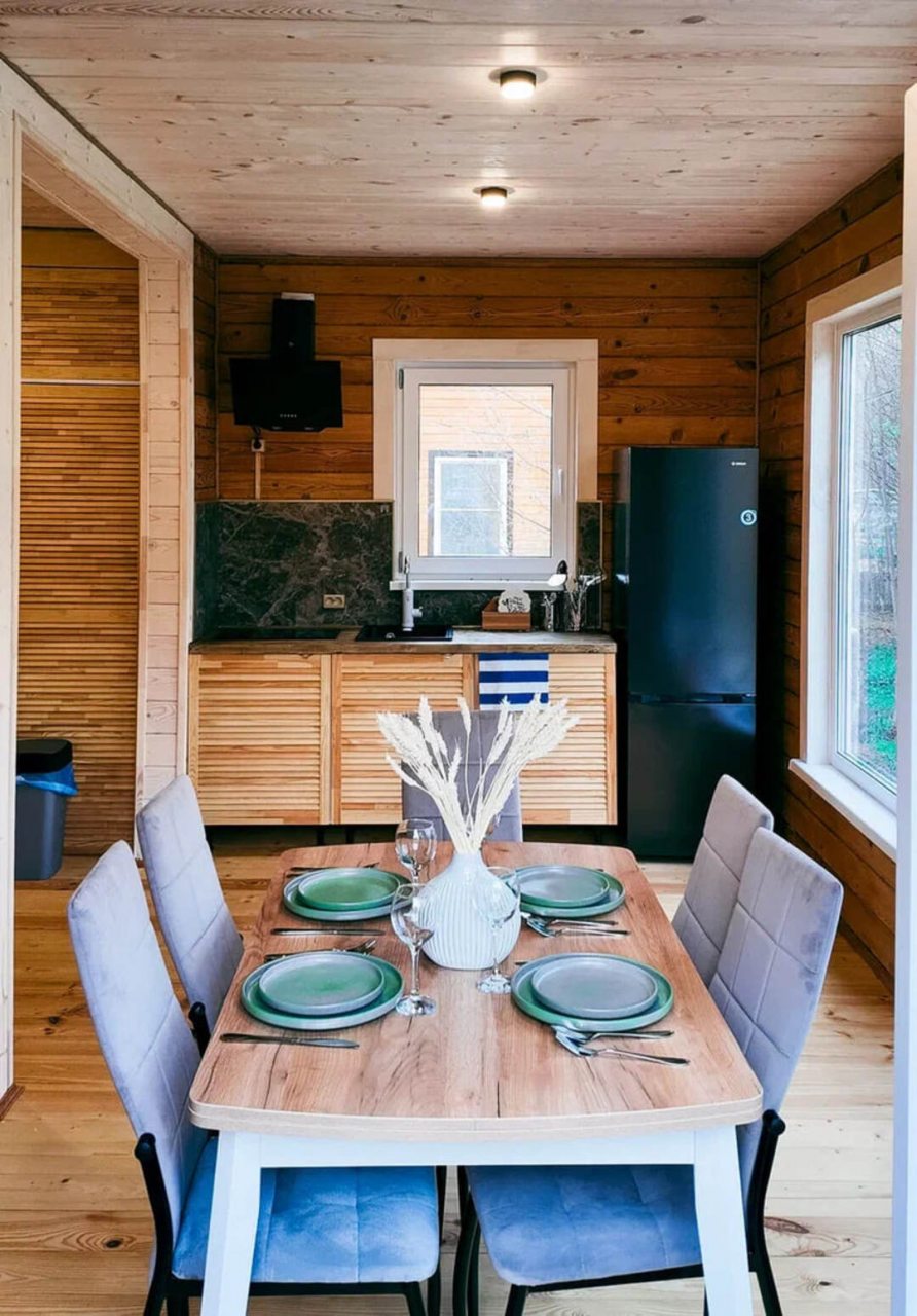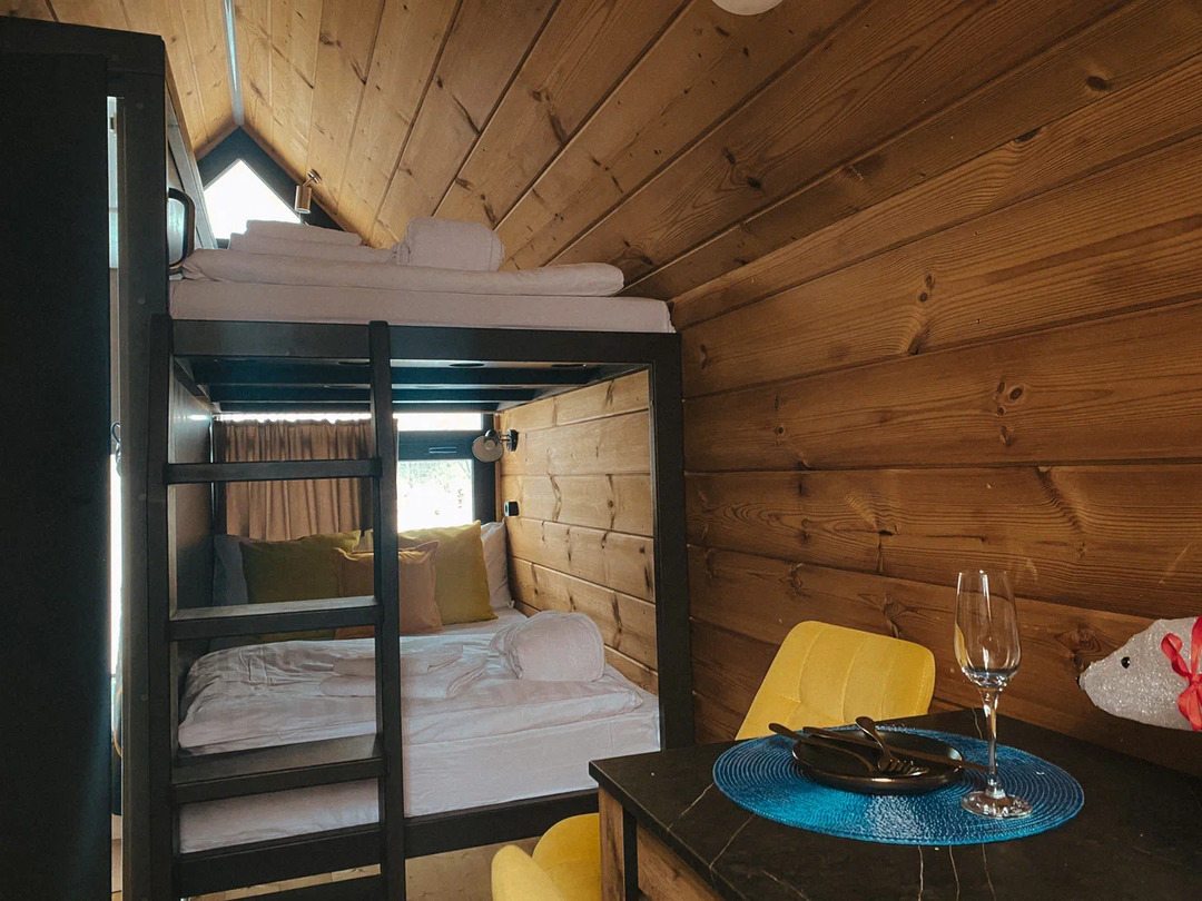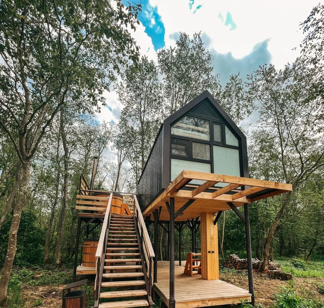 Классный глэмпинг со всеми удобствами и прекрасным сервисом. Это как отель на природе, где можно насладиться природой и нисколько не терять в комфорте и современных удобствах. Жили в коттедже. Домик очень маленький, особенно ванная комната, удобства все стесненные. Есть кухня, горячая вода, электричество. Красивая зеленая территория. Можно за отдельную плату заказать завтрак.