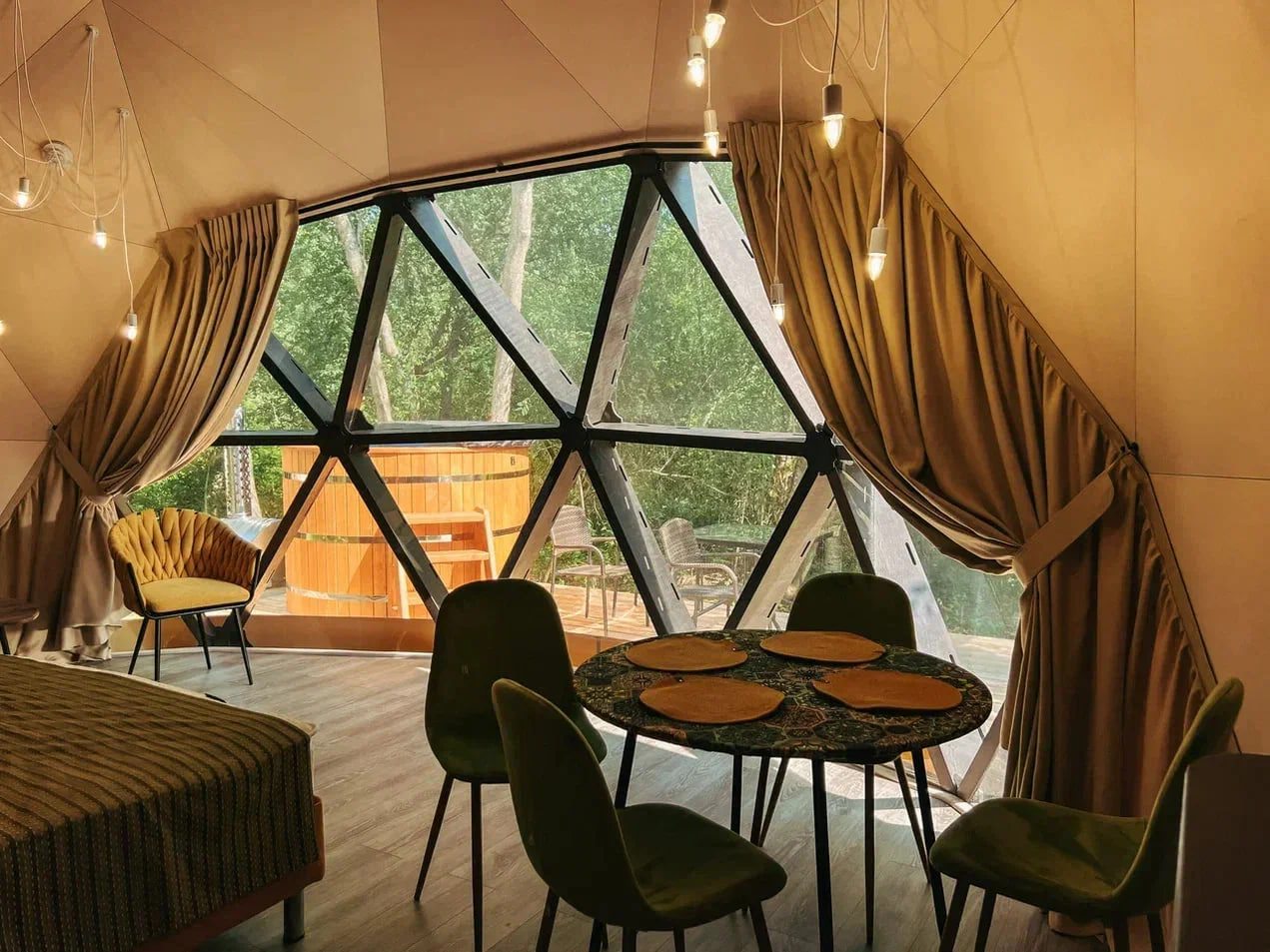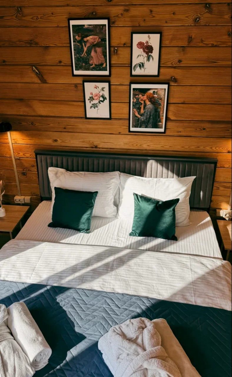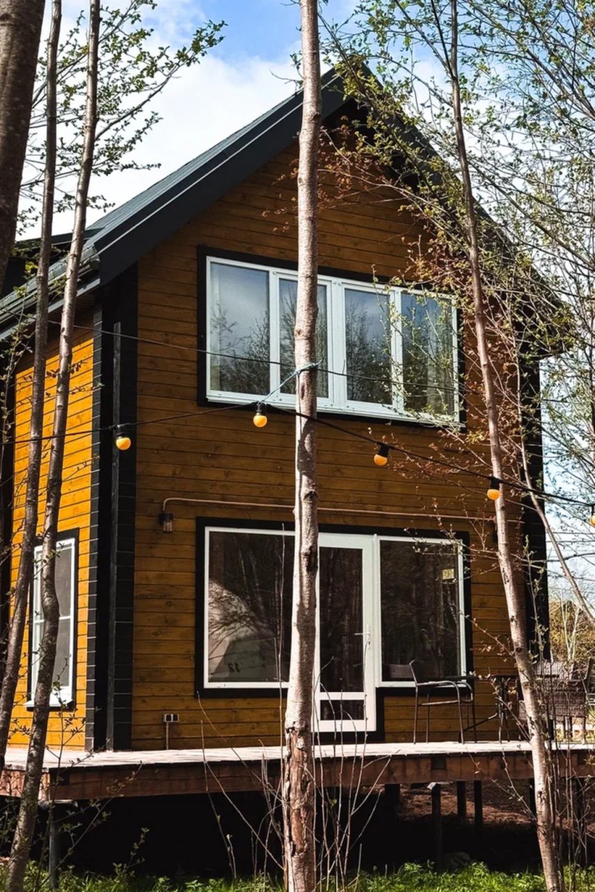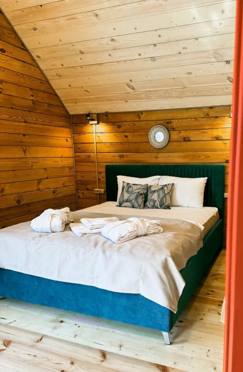 Классный глэмпинг со всеми удобствами и прекрасным сервисом. Это как отель на природе, где можно насладиться природой и нисколько не терять в комфорте и современных удобствах. Жили в коттедже. Домик очень маленький, особенно ванная комната, удобства все стесненные. Есть кухня, горячая вода, электричество. Красивая зеленая территория. Можно за отдельную плату заказать завтрак.
