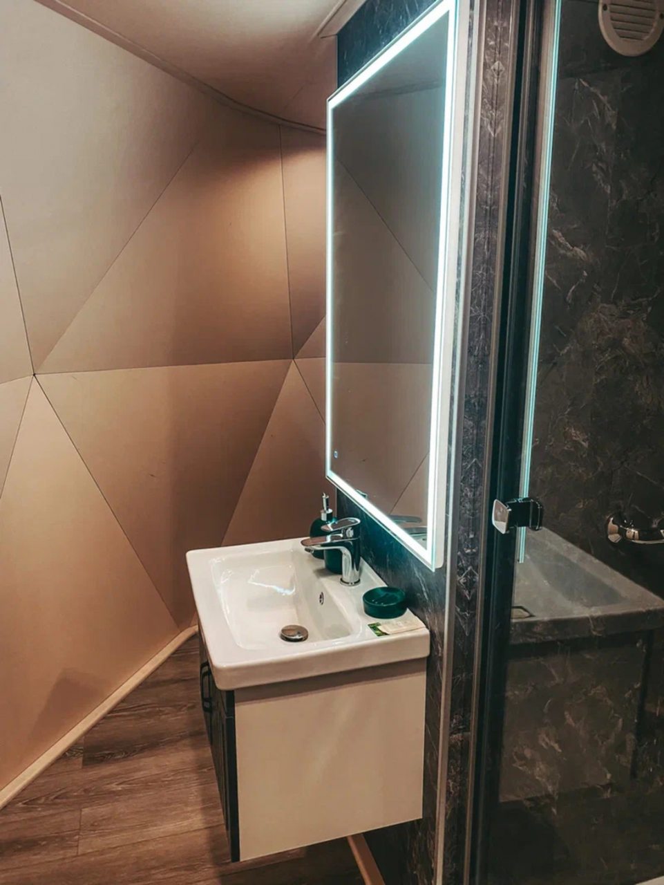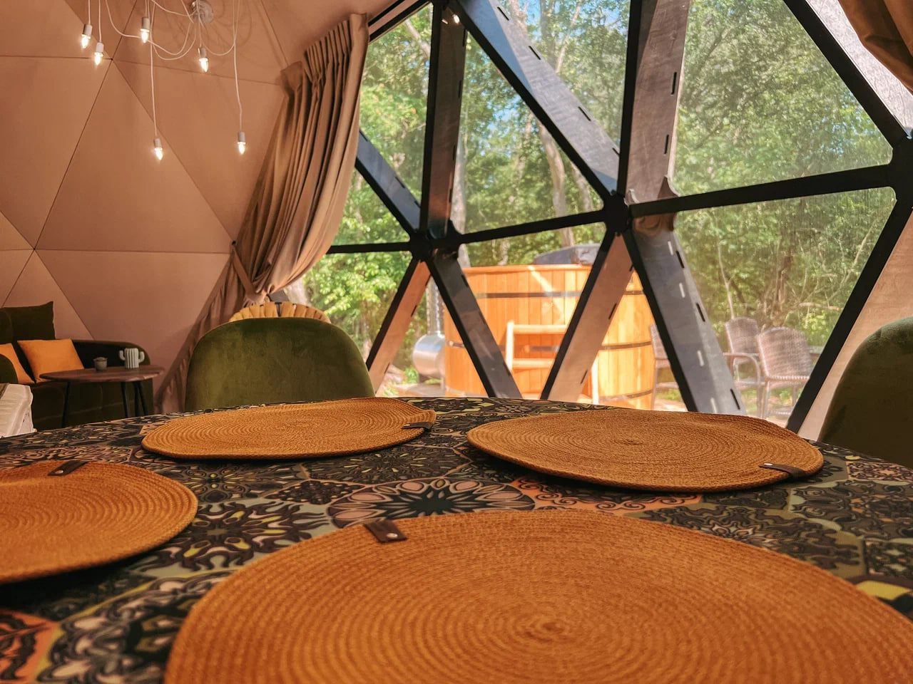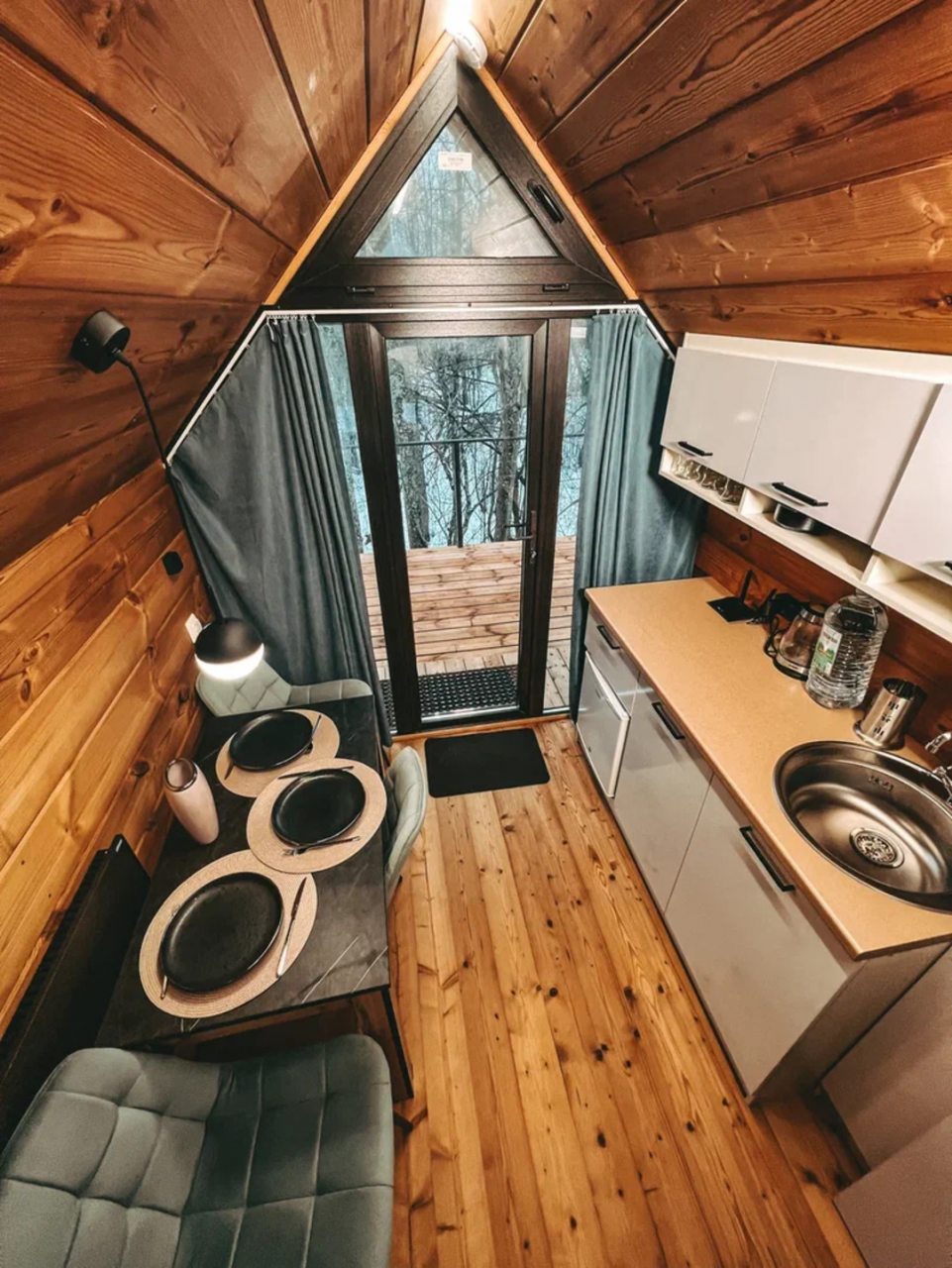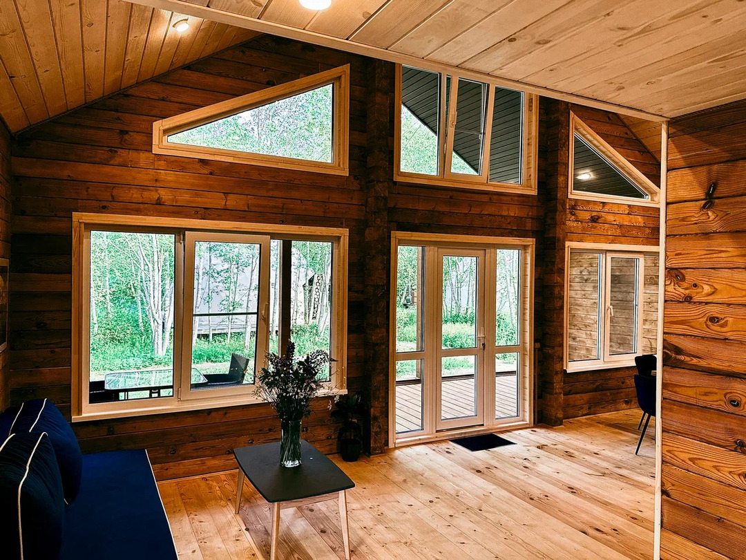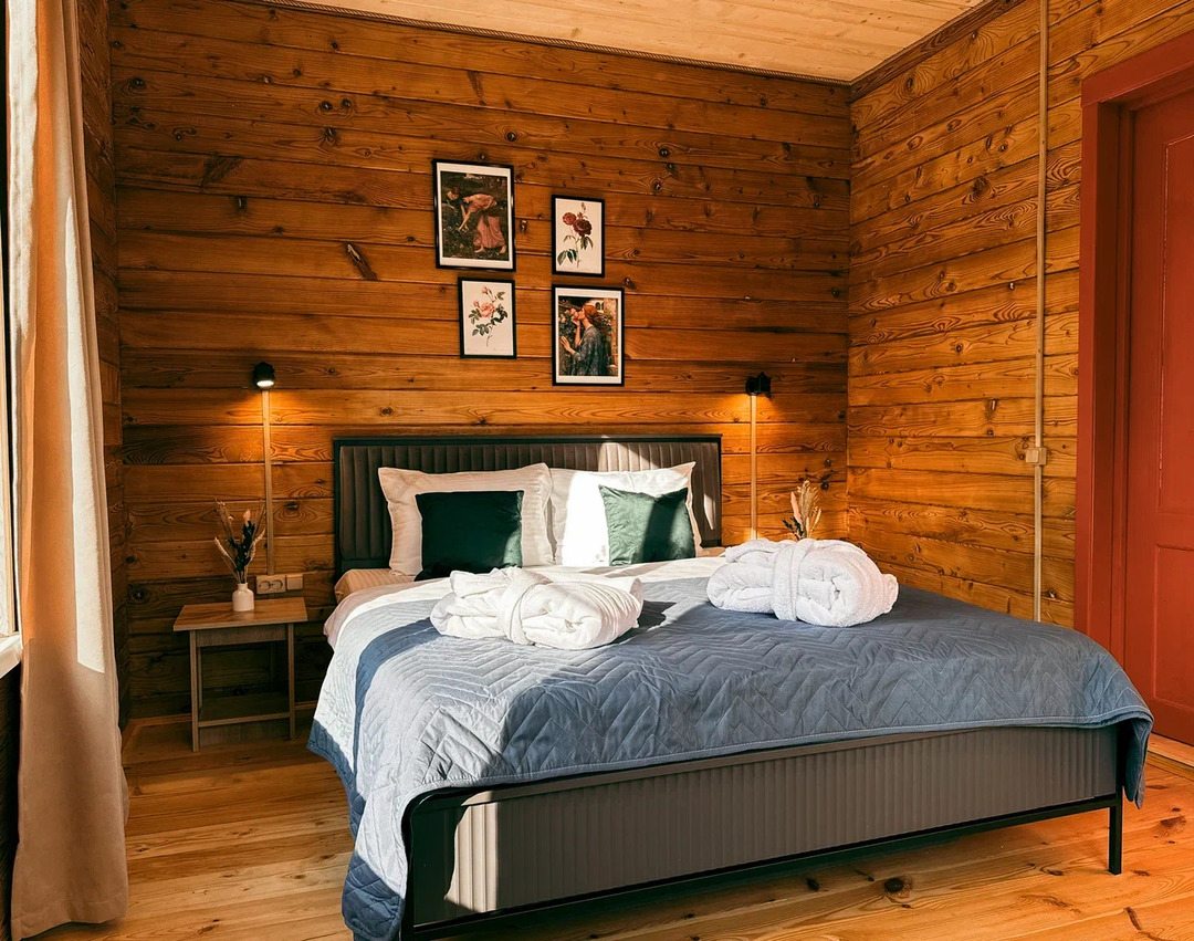 Классный глэмпинг со всеми удобствами и прекрасным сервисом. Это как отель на природе, где можно насладиться природой и нисколько не терять в комфорте и современных удобствах. Жили в коттедже. Домик очень маленький, особенно ванная комната, удобства все стесненные. Есть кухня, горячая вода, электричество. Красивая зеленая территория. Можно за отдельную плату заказать завтрак.