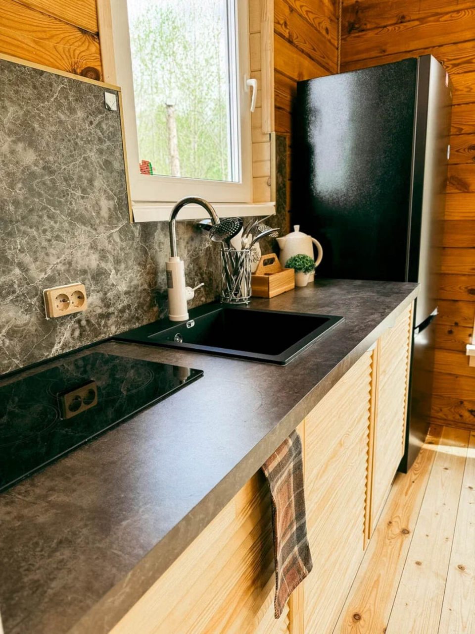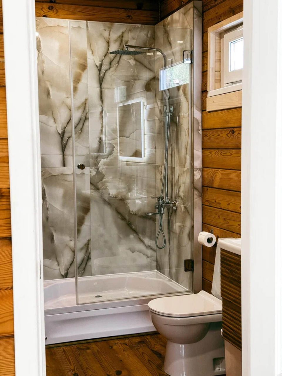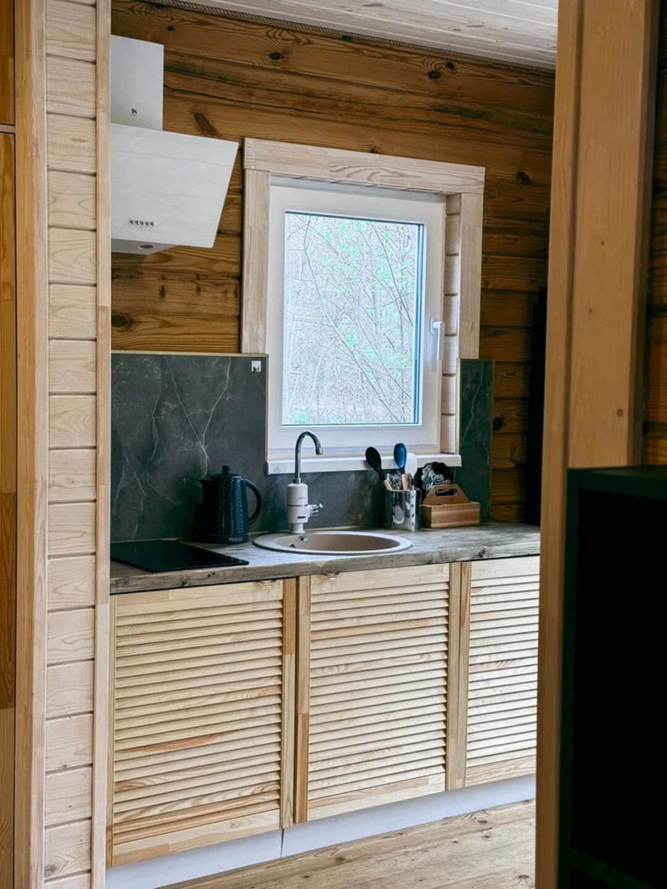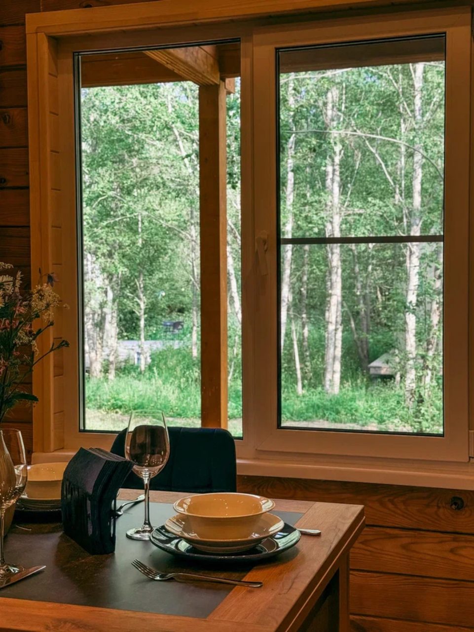 Классный глэмпинг со всеми удобствами и прекрасным сервисом. Это как отель на природе, где можно насладиться природой и нисколько не терять в комфорте и современных удобствах. Жили в коттедже. Домик очень маленький, особенно ванная комната, удобства все стесненные. Есть кухня, горячая вода, электричество. Красивая зеленая территория. Можно за отдельную плату заказать завтрак.