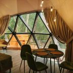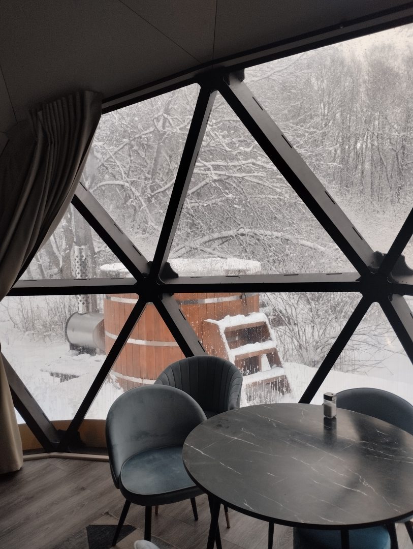 Оооочень приятный и вежливый персонал. Причем, сразу, с момента бронирования! С хорошим чувством юмора! Девчонки - респект! Ирина, спасибо за радушный прием, за внимание и за медовые презенты! Приезжала пообщаться с подругой. Малюсенький домик на дереве...вначале посмеялись, но, потом все так мило.... чисто, уютно, тепло....дали халаты, тапочки, шампунь, чай....хороший вайфай..вечером гуляли по поселку. Очень разнообразные виды домов. Красивая территория, ночная подсветка. Везде! Представляю, какая красота летом! Нахвалила подругам, придется ехать еще...теперь освоим купол! Ждите!