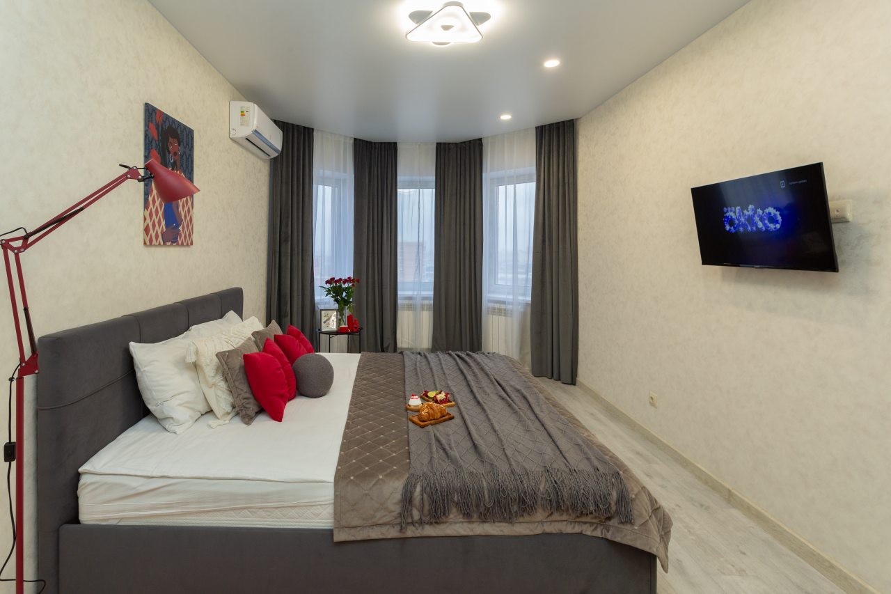 Качественные современные апартаменты, чистые комнаты, оригинальный стиль оформления, практично обустроенный интерьер. Есть всё для приятного пребывания. Сон роскошный, удобная мебель, хороший матрас, ночлег комфортный. Полная звукоизоляция, никто не мешает отдыхать. Я проживал один, пространства достаточно, ощущения тесноты отсутствуют, домашнее тепло чувствуется сразу. Остановиться советую смело.