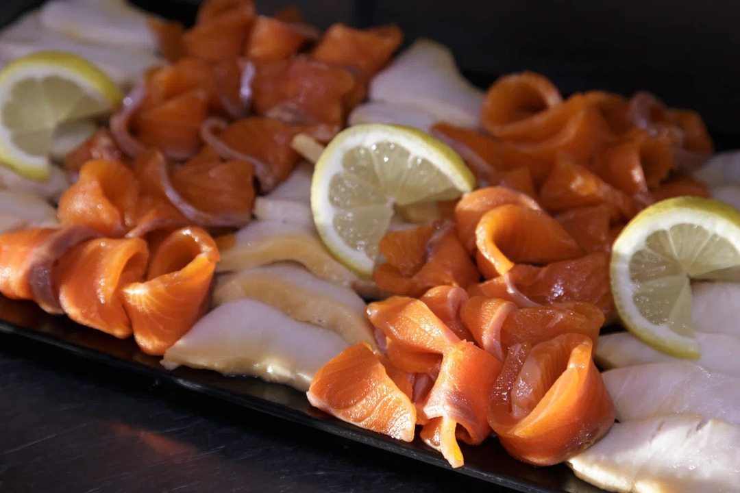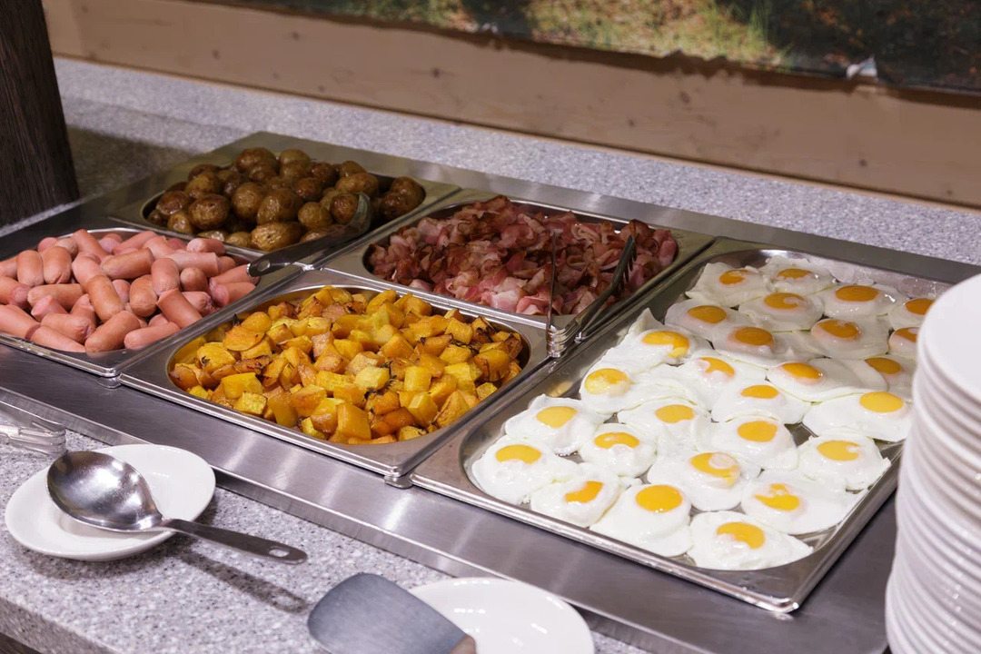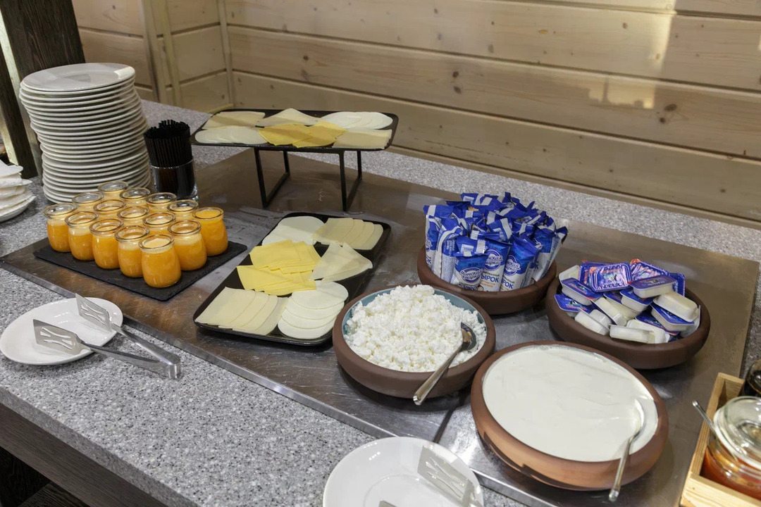 Завтрак шведский стол приятно радует. Добавили в меню слобосоленую красную и масляную рыбу.