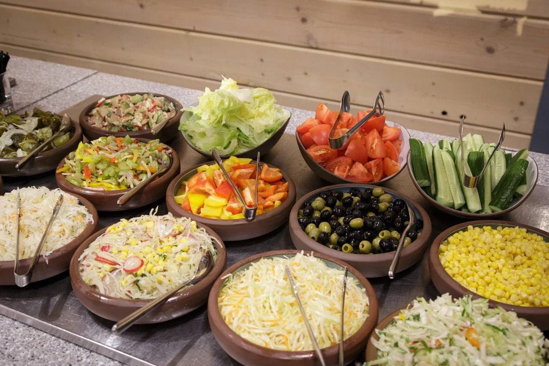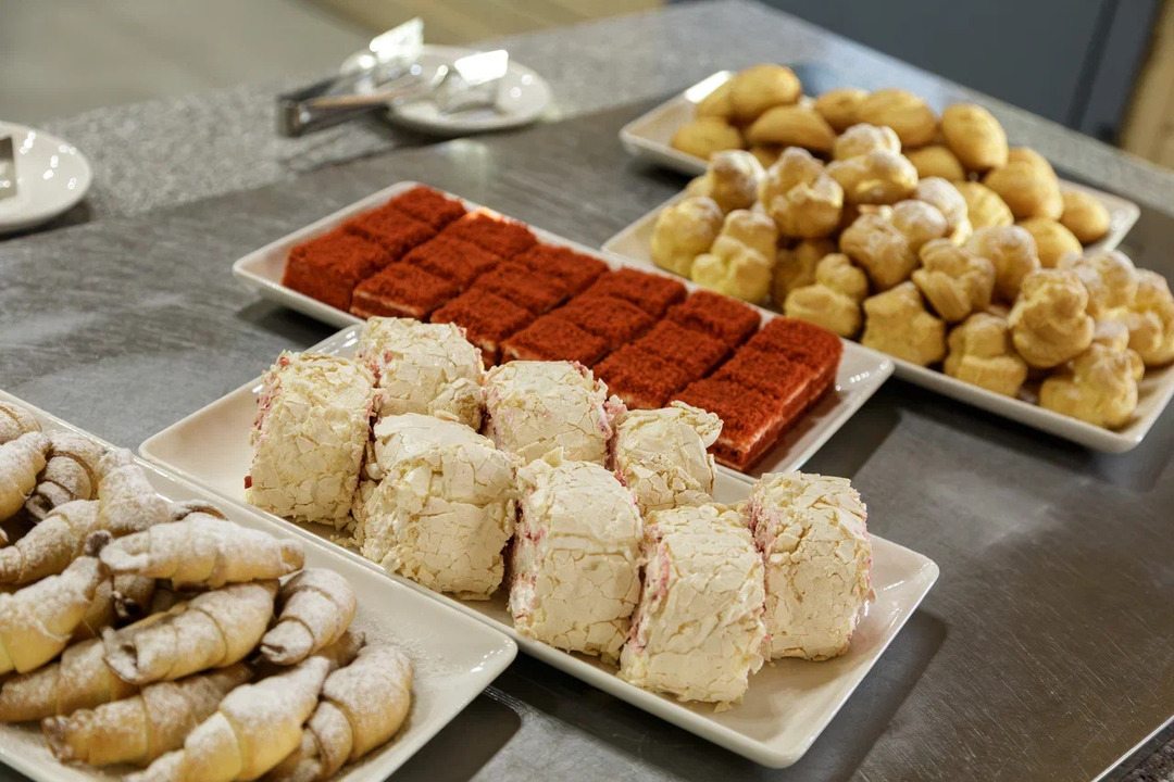 Выбор большой и разнообразный. Кофе, чай, фрукты, десерты, закуски и полноценное питание.