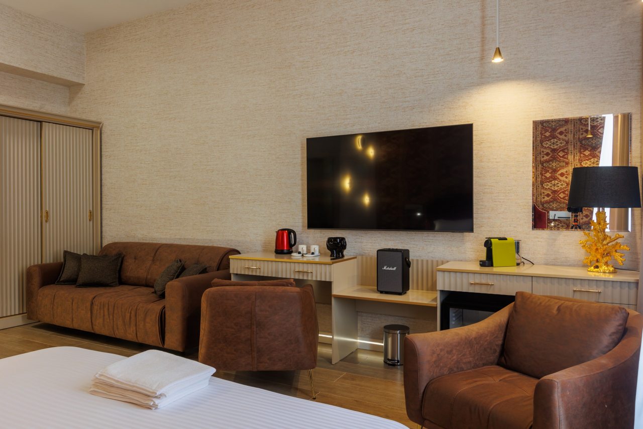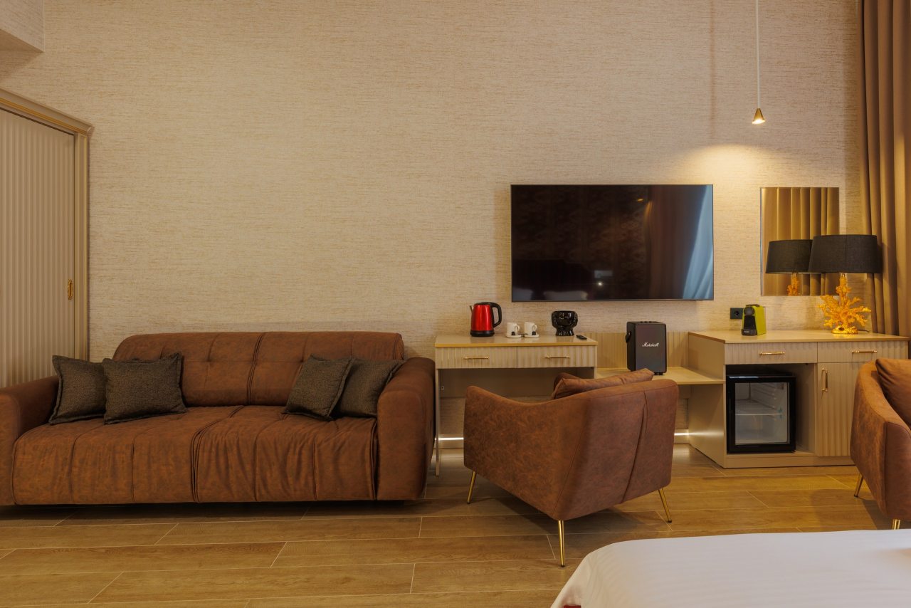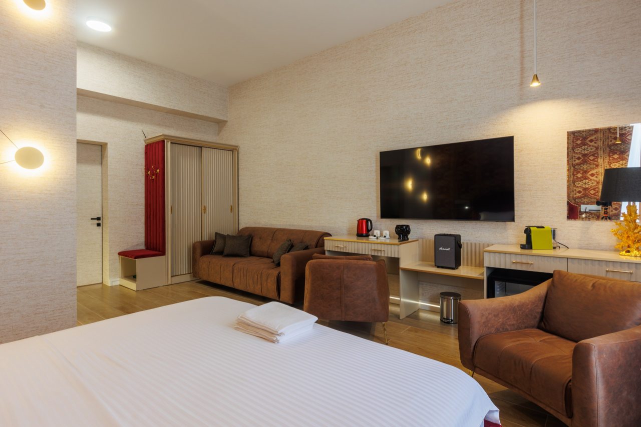 Нам очень понравился номер и сам отель. Нас встретил доброжилательный и приятный администратор Гуля. Показа где можно покушать и как лучше дойти до пляжа.