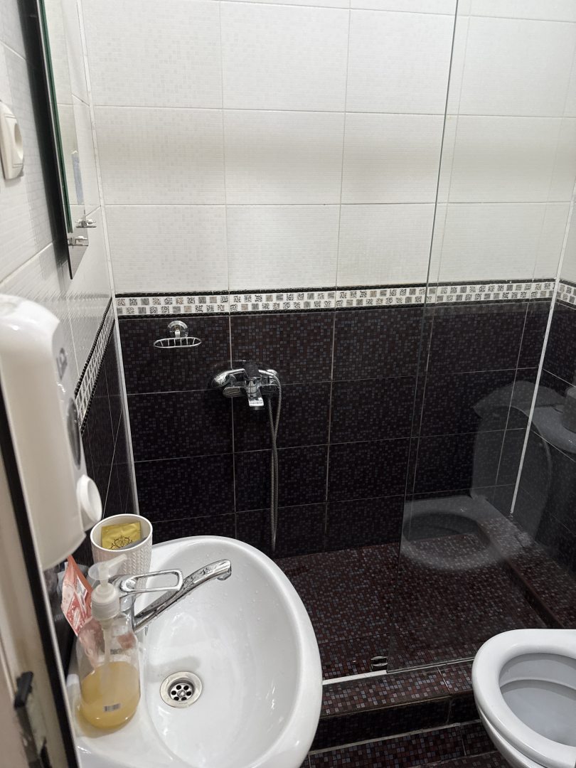 Из недостатков: вокруг много шума, проезжая улица,вид из окна номера на дорогу, в окне нет москитной сетки, мошки мешали спать и яркий фонарь за окном, внизу столик кафе с пепельницей, окно открыть нереально -себе хуже