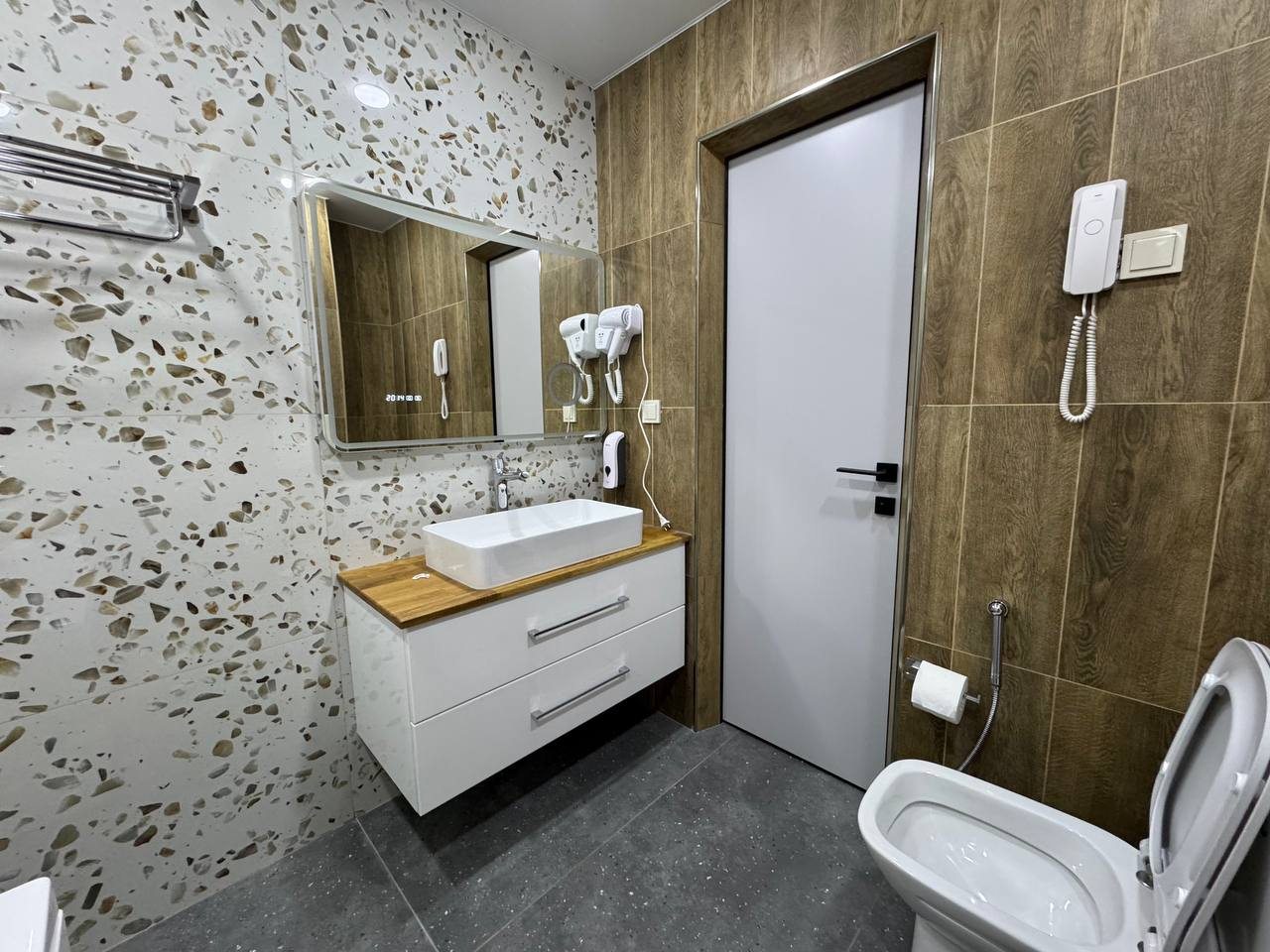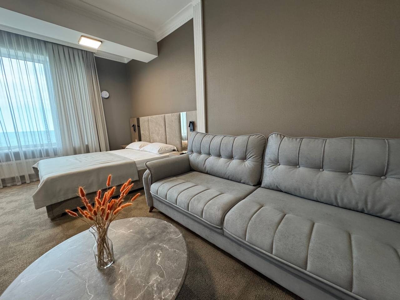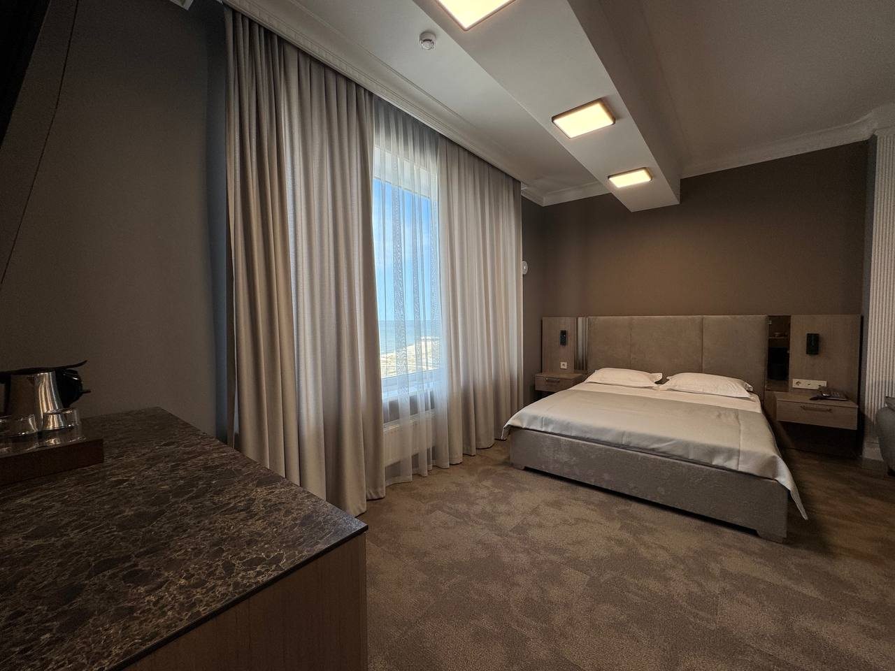 Прекрасный отель для отдыха в Махачкале. Уютный и чистый номер, предоставляют постельное белье и полотенца, все также чистое и мягкое. Для пребывания и отдыха имеется вся необходима мебель и техника. Ванная комната симпатичная, вместо стандартного душа установлена ванная. В ресторане вкусно готовят, блюда также можно заказать в номер, чем мы и пользовались. Все приносят целое, горячее и вкусное.