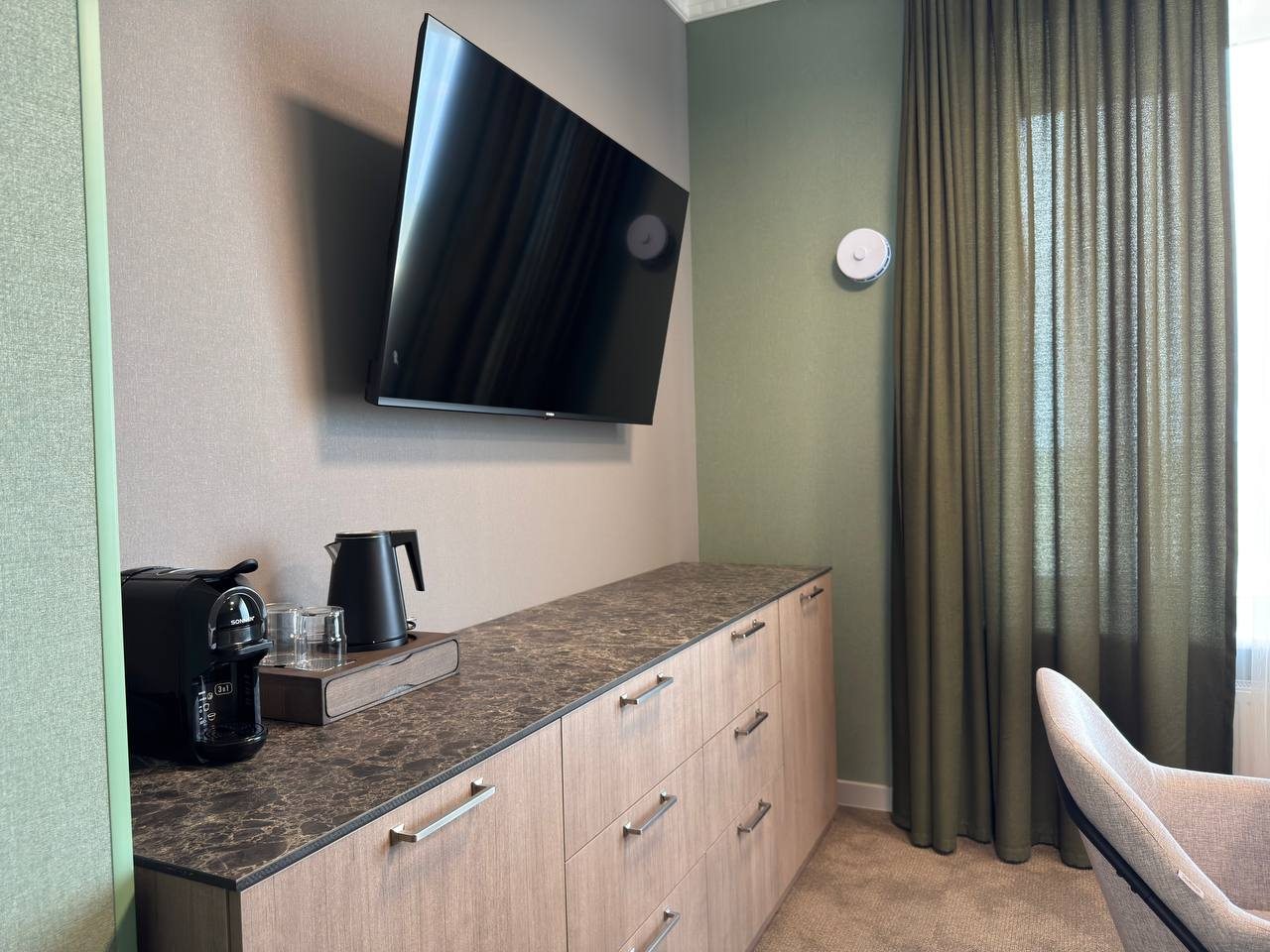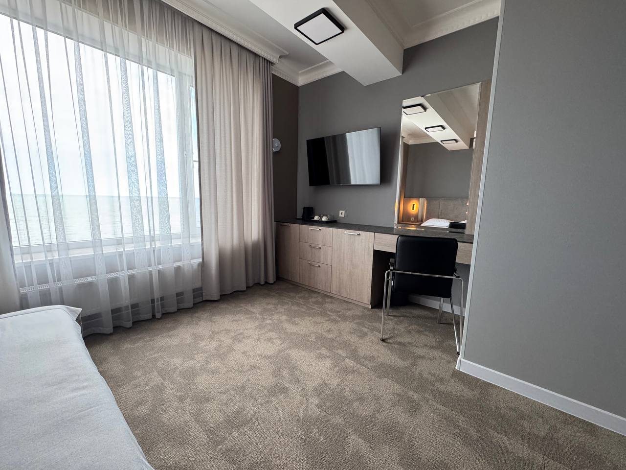 Больше всего понравился вид из окна. Просто потрясающая местность вокруг. Постельное белье белоснежное. Номер хороший, уютный, комфортный. Персонал приятный, приветливый, вежливый.