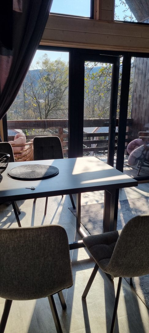 Давно мечтали отдохнуть в горах. Отдых в этом гостевом доме очень понравился, мы снимали отдельный домик. В доме очень уютно, созданы все условия для комфортного отдыха: кондиционер, холодная и горячая вода без перебоев, причем вода очень вкусная, из скважины микроволновая печь, электрический чайник, был даже чайник для заваривания чая очень красивая посуда, классный душ и санузел, в санузле над умывальником отличное зеркало, был фен идеальное постельное белье, удобный двуспальный диван внизу и классная двуспальная кровать на мансарде. Над большим обеденным столом хороший телевизор, где есть масса каналов на любой вкус, вай фай работал отлично. Понравилось абсолютно ВСЕ. Очень понравилось сидеть в уютных креслах на открытой террассе, утром пить кофе, а вечером любоваться звездами. Двери на террасе сделаны так, что в домике при закрытых дверях идеальная тишина. Возле домика есть мангал, можно жарить шашлык и любоваться видом. Природа просто необыкновенной красоты, недалеко от домика есть несколько мест для купания в горной реке. Можно по рельсам дойти до Гуамского ущелья и прийти обратно, что мы и сделали, было очень здорово. Все в этом гостевом доме сделано с хорошим вкусом, добротно, с любовью, с заботой о людях.