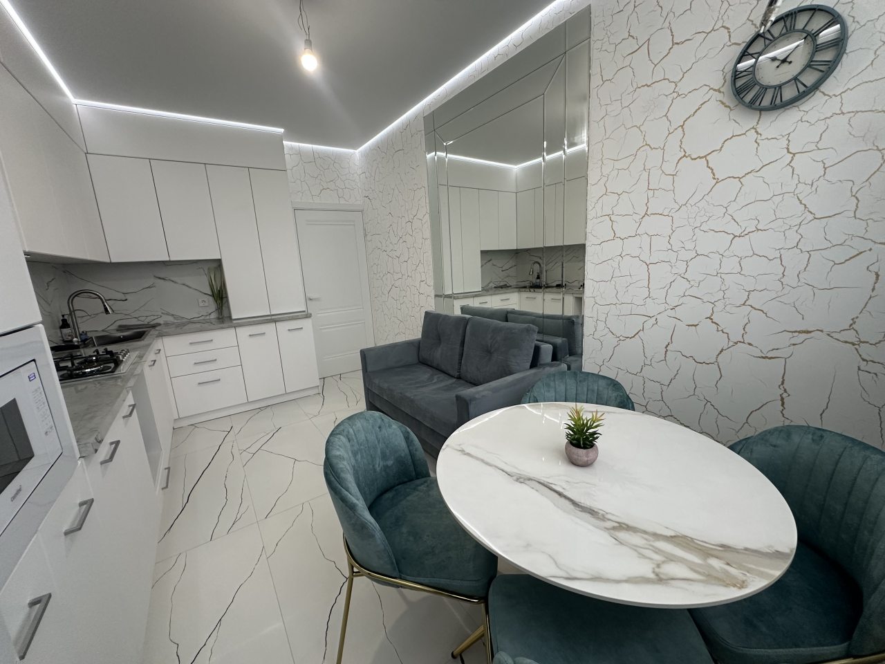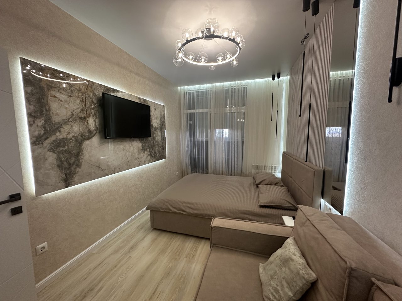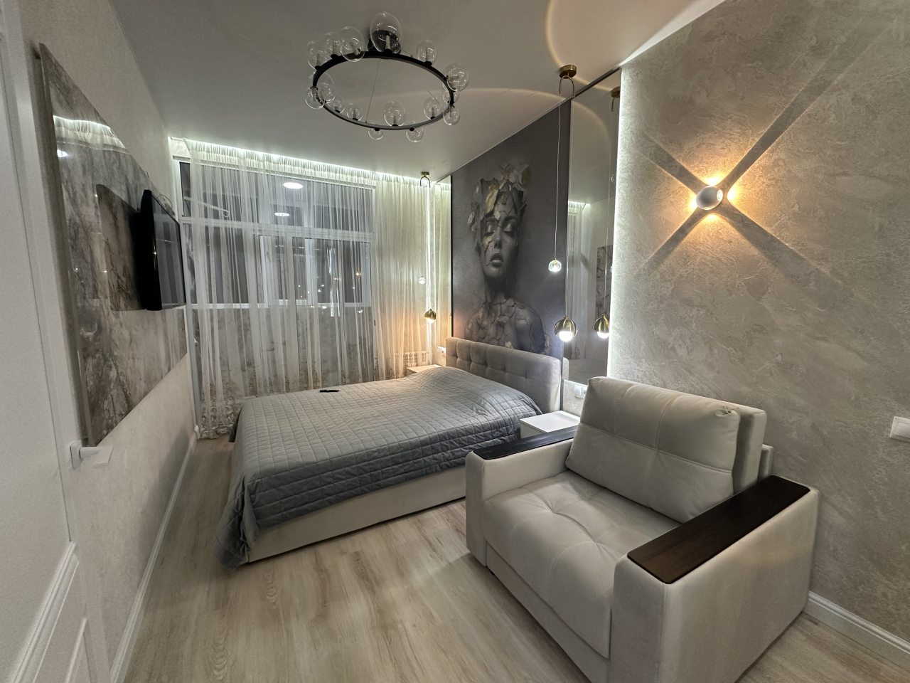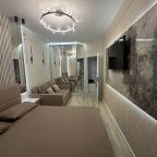 Стильные современные апартаменты, с комфортом позволят разместиться до 4-х человек. Приятное оформление, мебель хорошая по качеству и состоянию - не скрипит, не просижена, нет пятен на обивке. Красивая подсвечивающаяся мраморная панель как зона ТВ. Вообще все выглядит дорого богато. Чистота порядок. Расположение достаточно удобное и для командированных, и для туристов. Прям напротив автовокзала.