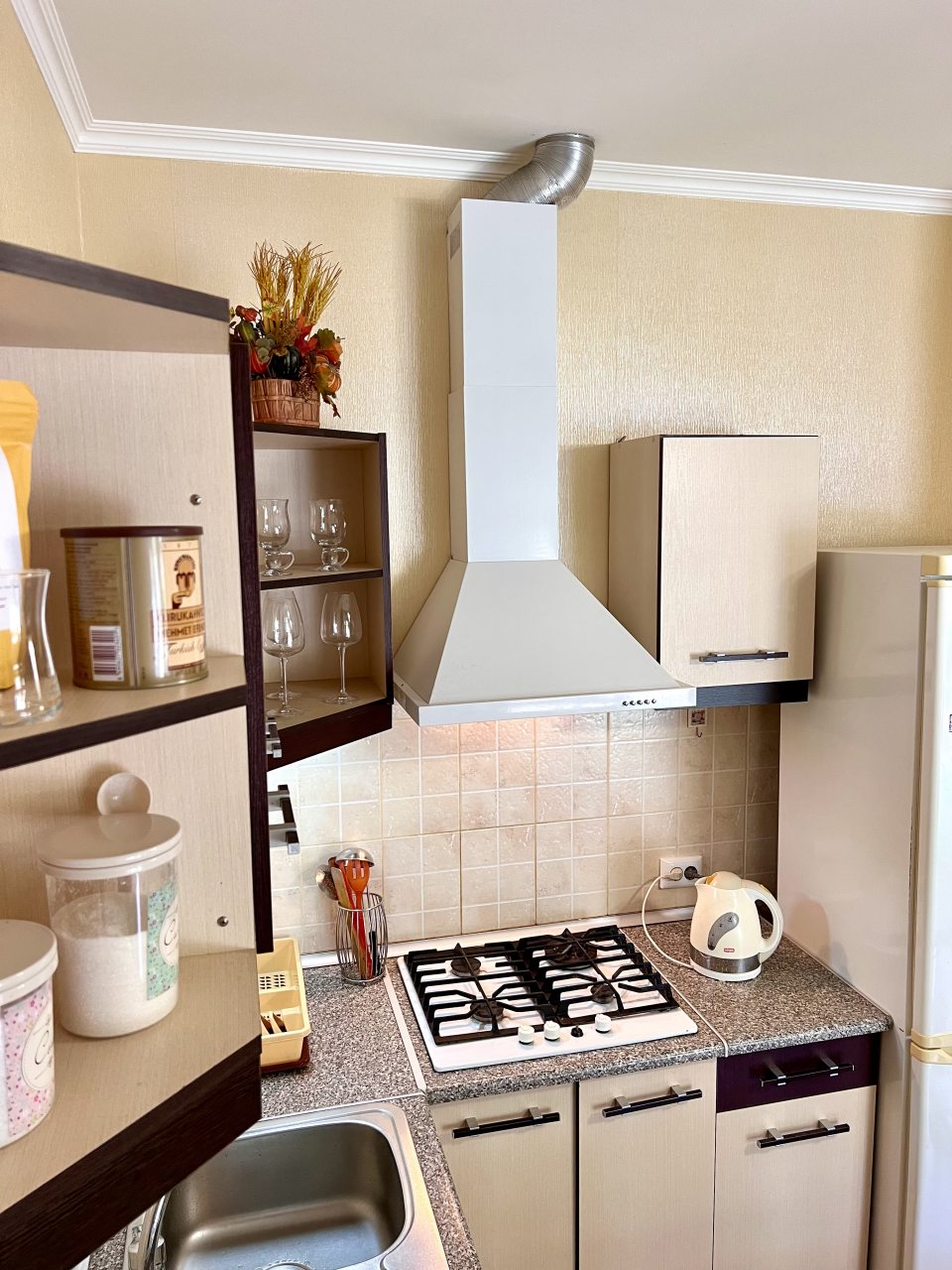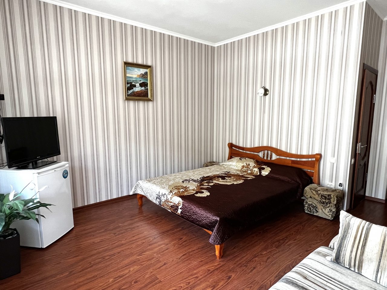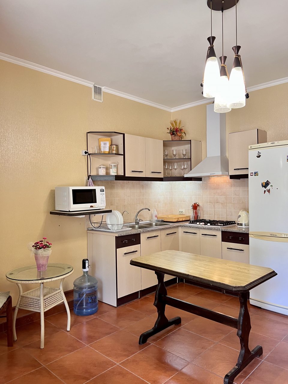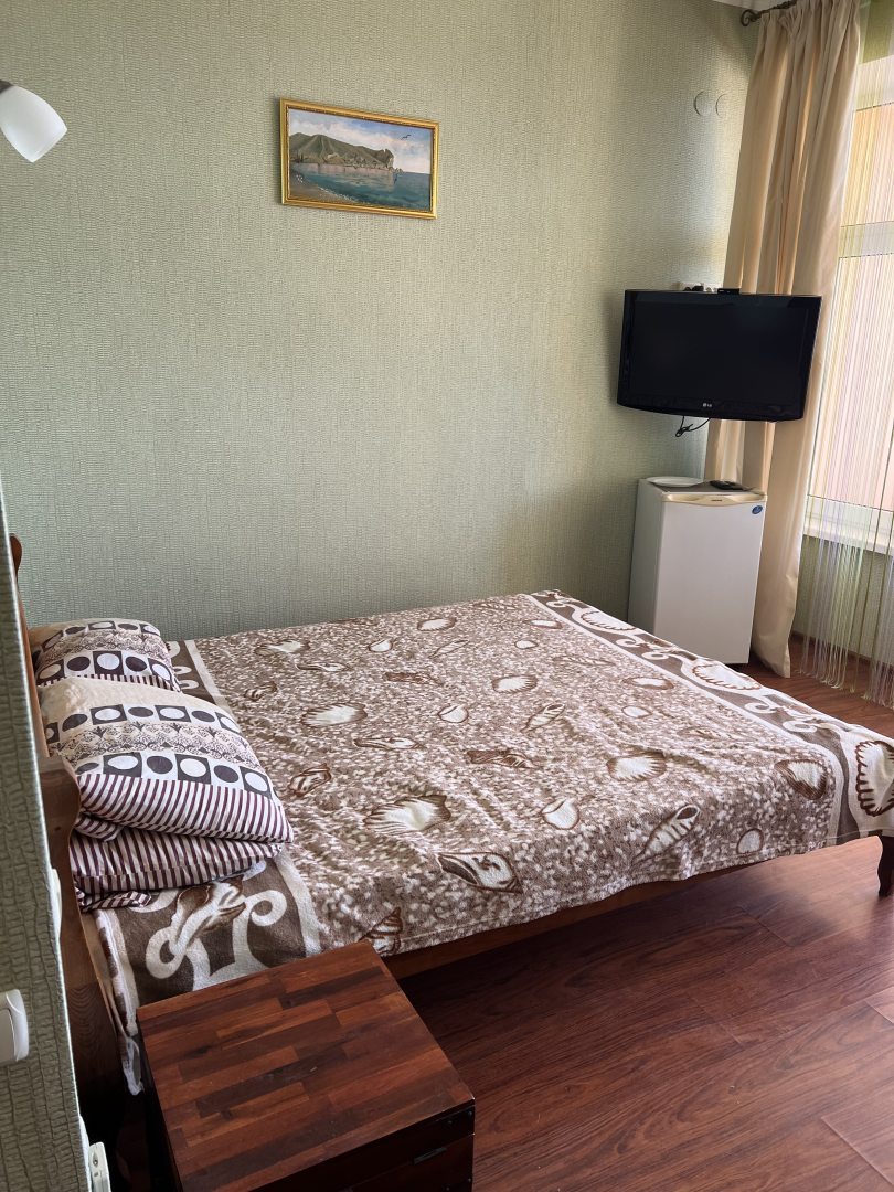 Из недостатков: 1) Телевизор только для вида, ни один канал не показывает, хоть и стоит цифровая приставка.Была флешка с фильмами, не помагло,в телеке нет даже разъема под USB .2) Расположение раскладного кресла для третьего человека в разложенном виде закрывает проход к балкону, а туда сюда его складывать так себе удовольствие и к тому же придя в обед с море тоже хочется полежать. 3) Сильный запах в ванной из канализации , закрывали сливы и так немного помогало.