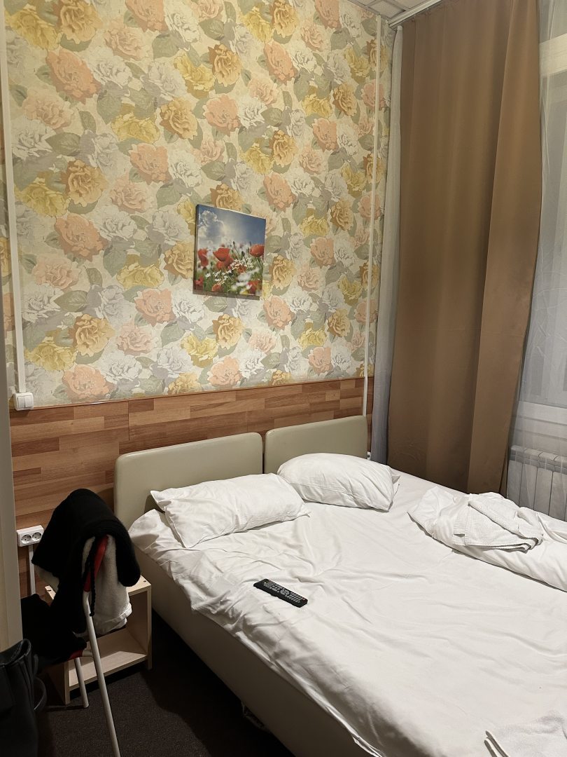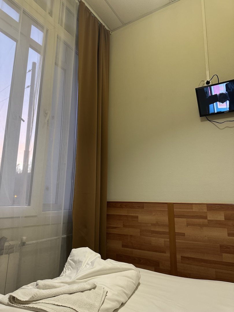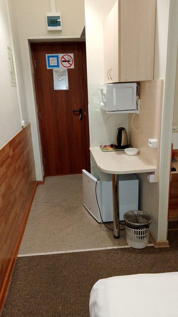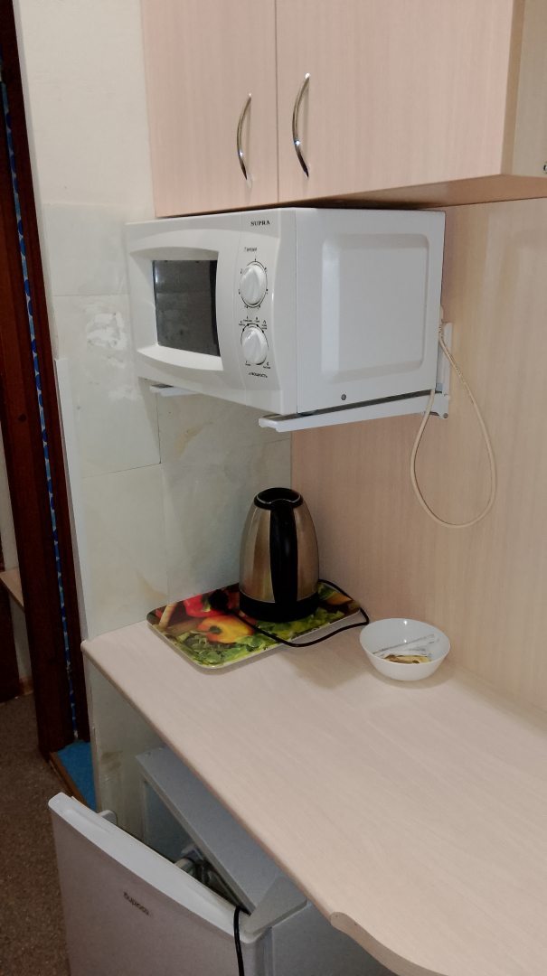 В номере чисто, чистое постельное белье, чистые полотенца. В номере есть чайник, микроволновка, телевизор, вся необходимая посуда, на все дни прибывания чай, гель для душа и шампунь.