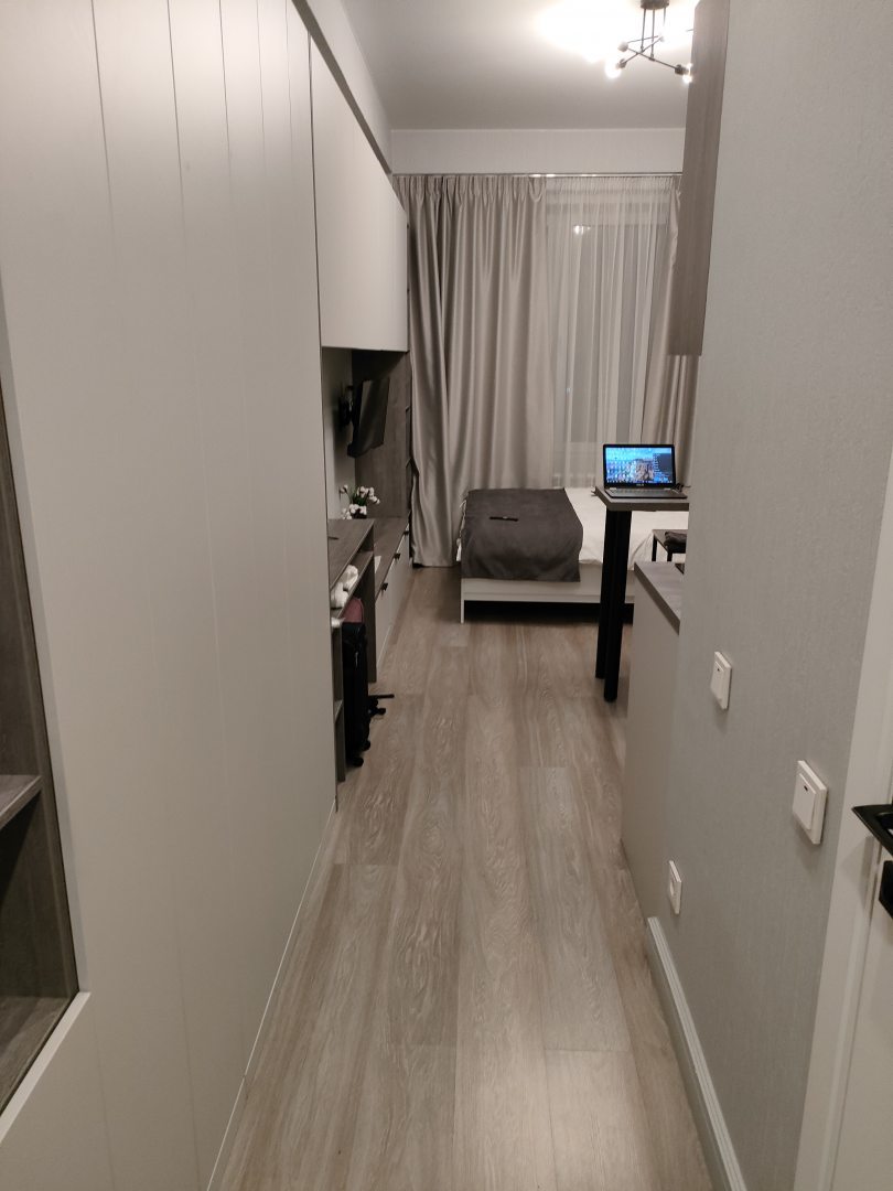 Рассматривал варианты жилья на срок деловой поездки. Важнейшие факторы моего выбора включали близость расположения в центральной части города и наличие отдельной зоны для готовки еды. Апартаменты содержались в идеальной чистоте, следов пыли и пятен не наблюдалось. Запахи посторонних веществ отсутствовали. Каждый элемент обстановки находился в надлежащем техническом состоянии. Интерьер комнаты современный, привлекательный и стильный.