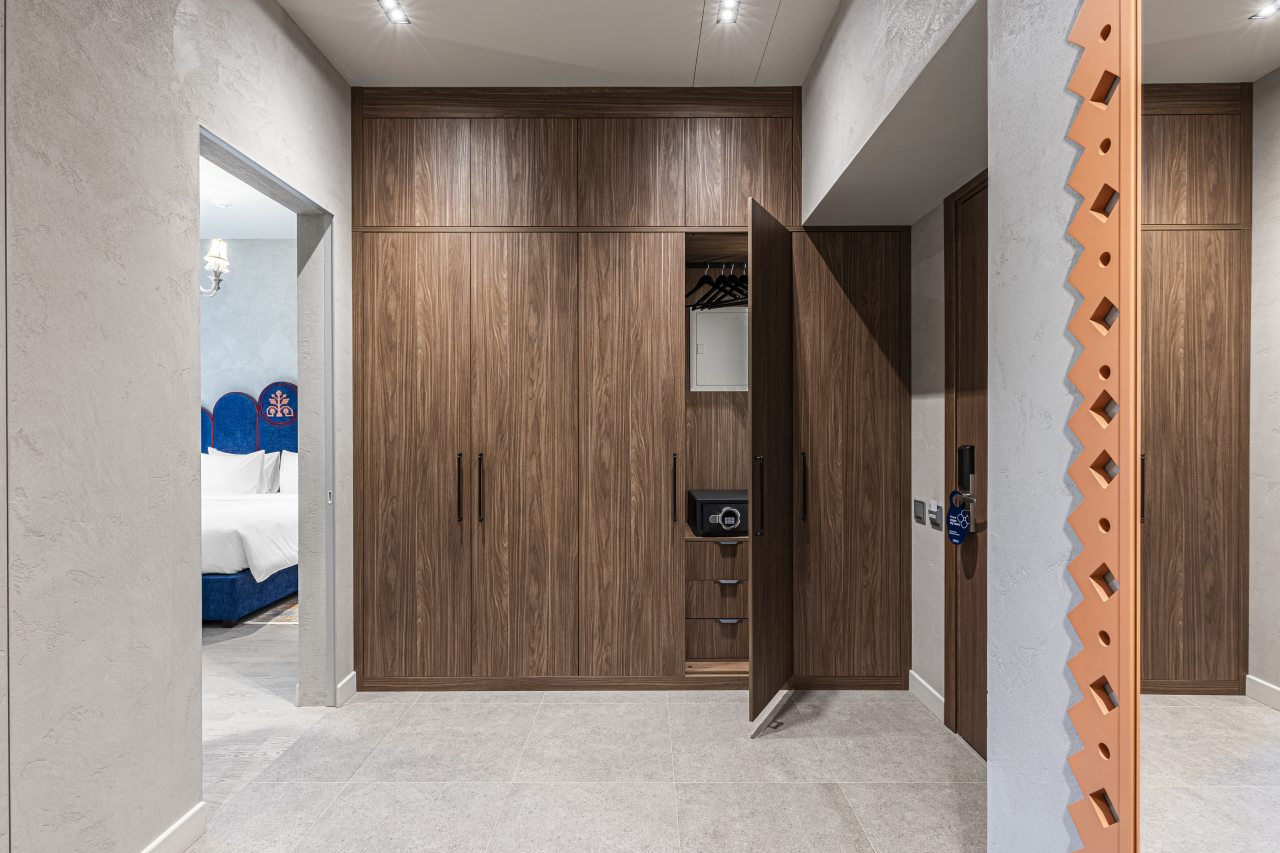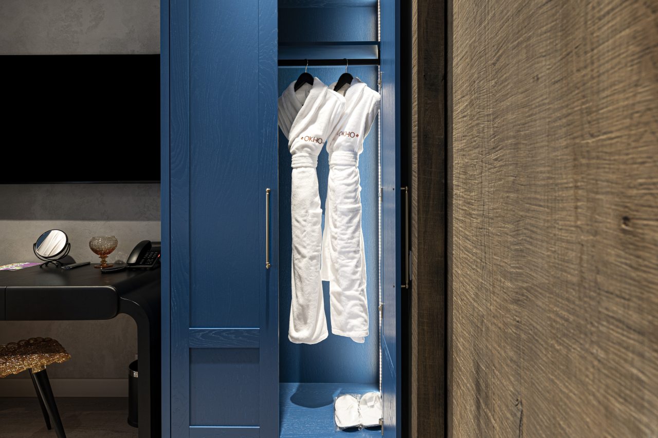 Настолько всё продумано, что даже коврики для молебня есть и аккуратно упакованы в шкафу. В номере тихо и уютно, а мебель красивая и удобная.