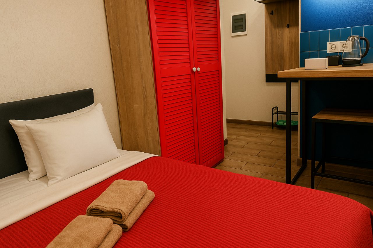 Нормальный апарт-отель. В принципе, здесь все видно по фото, так что слова могут быть излишни. Номер маленький, кровать упирается прям в стену. Муж высокий, ему конечно неудобно было. Так для жизни есть все. Апартаменты достаточно чистые, есть постельное белье. Расположение не идеальное, далеко до центра, но на метро добраться не сложно.