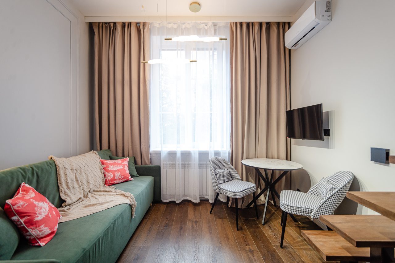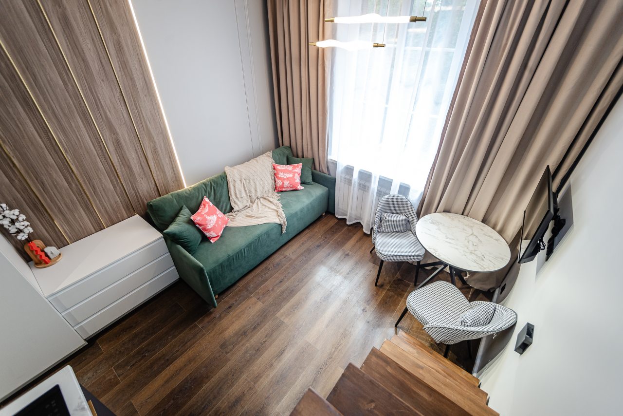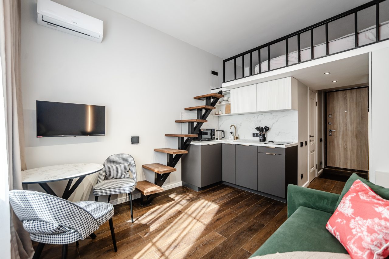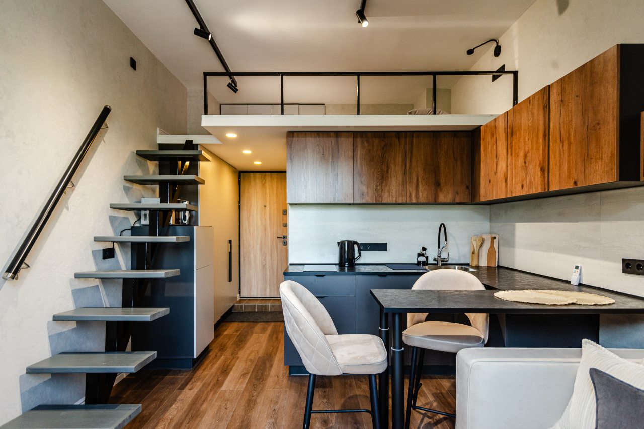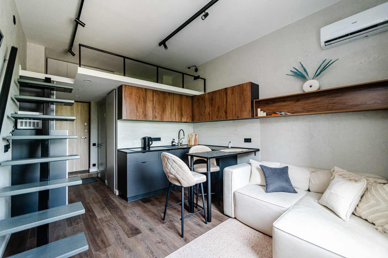 Квартира нам понравилась сразу. Мы заселились быстро, без каких-либо проблем. Хорошая обстановка, есть вся необходимая техника. Мы впервые останавливались в двухуровневых апартаментах, но нам все понравилось. Также расположение удобное. Есть парковка, что для нас было важно.