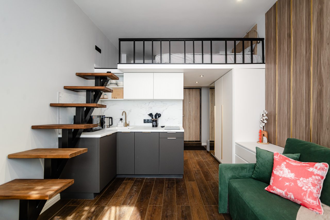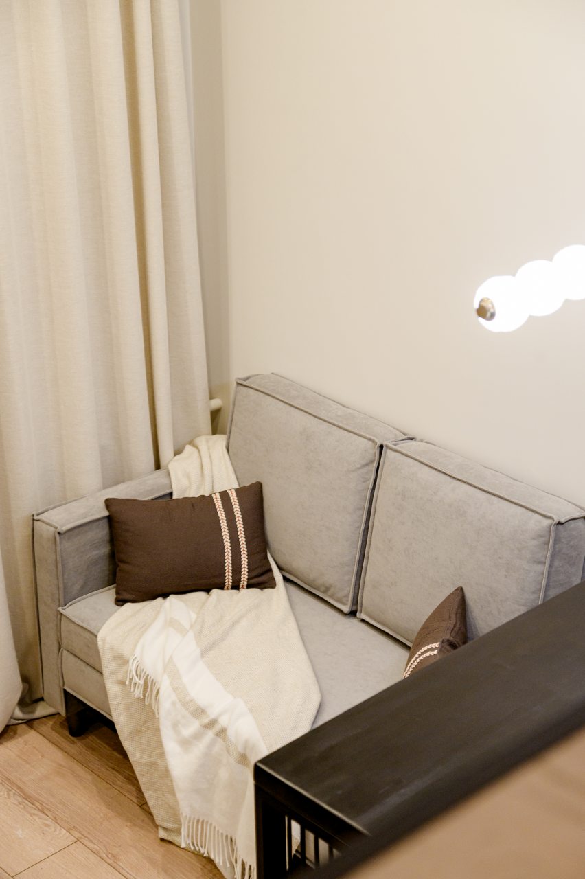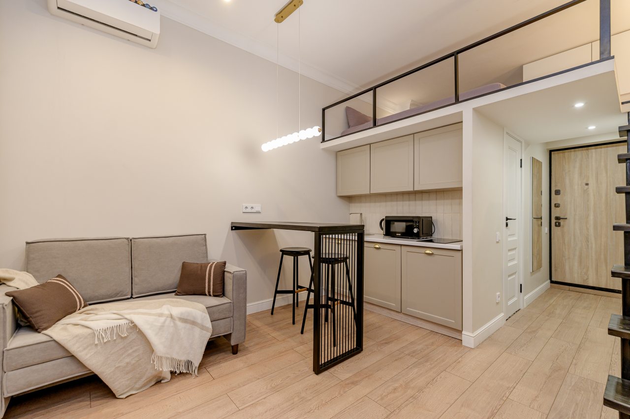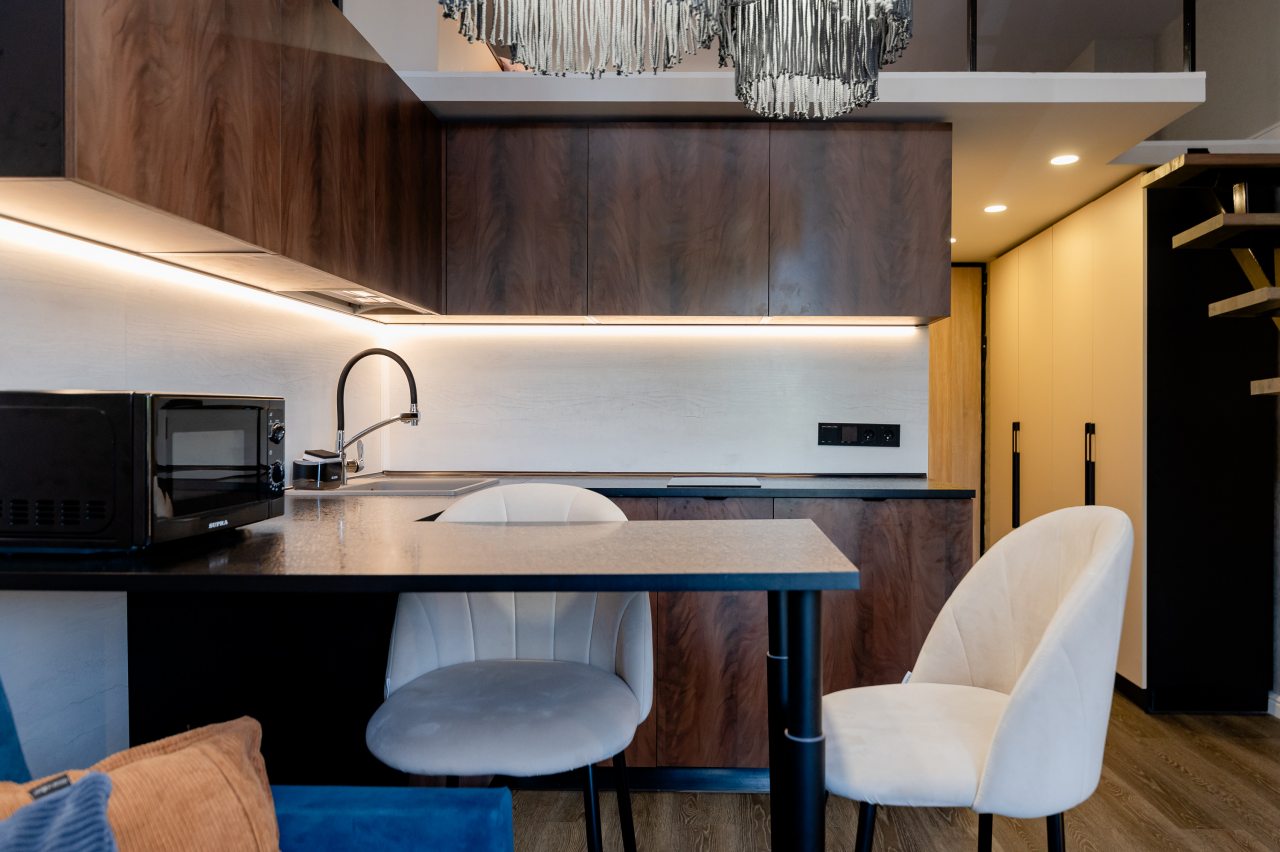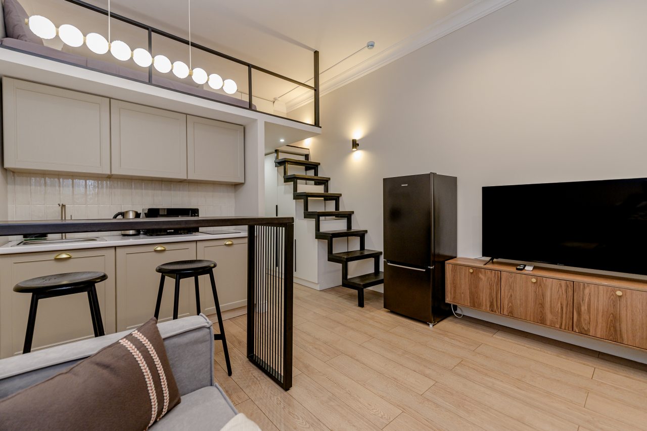 Квартира нам понравилась сразу. Мы заселились быстро, без каких-либо проблем. Хорошая обстановка, есть вся необходимая техника. Мы впервые останавливались в двухуровневых апартаментах, но нам все понравилось. Также расположение удобное. Есть парковка, что для нас было важно.