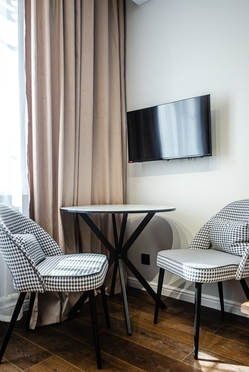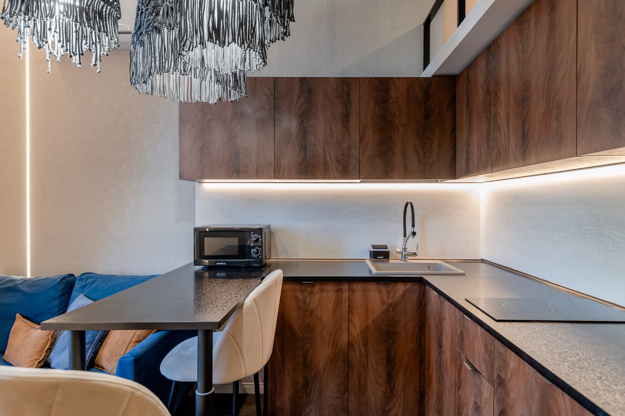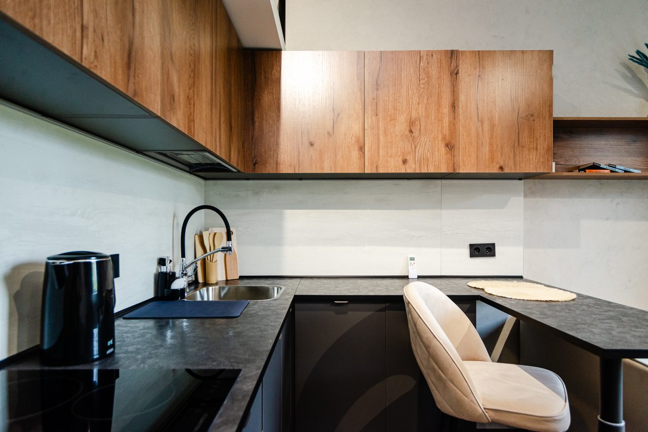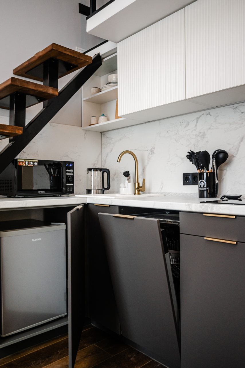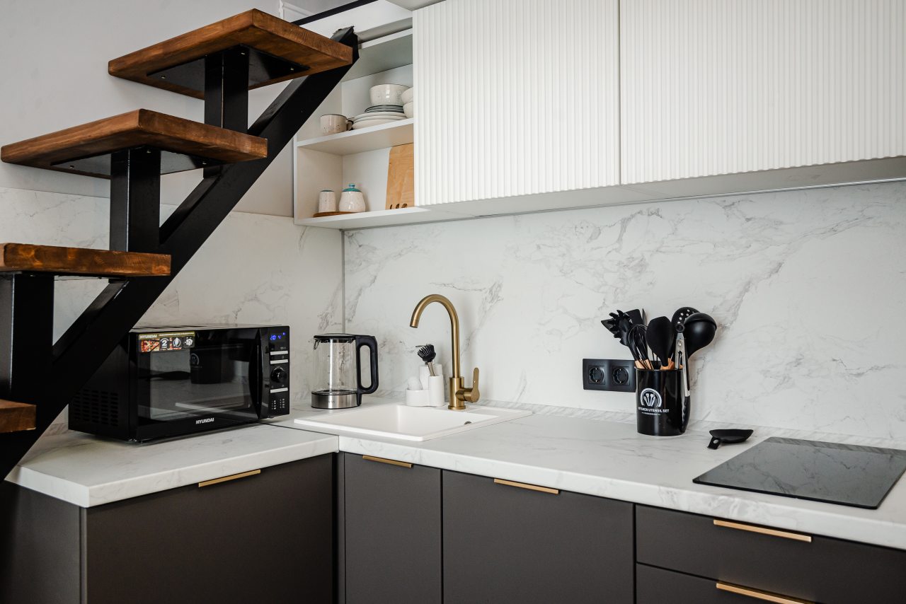 Квартира нам понравилась сразу. Мы заселились быстро, без каких-либо проблем. Хорошая обстановка, есть вся необходимая техника. Мы впервые останавливались в двухуровневых апартаментах, но нам все понравилось. Также расположение удобное. Есть парковка, что для нас было важно.