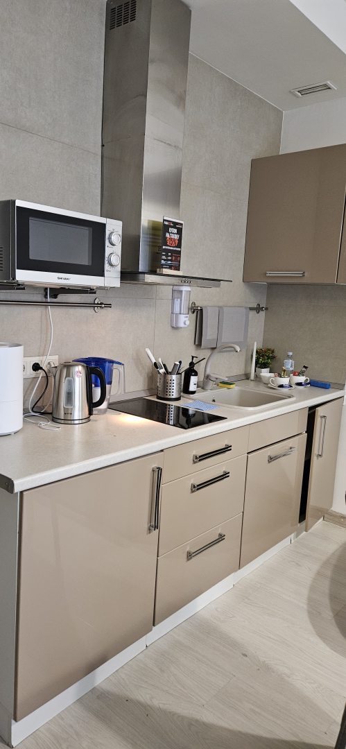Это апартаменты квартирного типа. Есть ЖК Лайнер, у них 2 дома. Оба расположены около ТЦ Авиапарк. Один справа от метро - это Лайнер Восток, дом номер 2. Второй слева от метро Лайнер Запад. В итоге, где Вас поселят, узнаете только перед заселением. Заселение бесконтактное. Рецепшена нет. Вахтерше на 1 этаже ничего от вас не надо. Мы жили И123. Это Ходынский б-р 20 А. На 10 этаже. Инструкция по заселение придёт Вам на Вотсап. В квартире есть всё. Абсолютно вся бытовая техника (микроволновка, чайник, фен, пылесос, стиральная машина, телевизор, Алиса даже есть) Вся посуда тоже имеется. Приветственные 2 пакетика кофе, 2 пакетика чая, 2 Орео , бутылка воды. Вот мелочь ,но приятно! Даже наборы с зубной щёткой и пастой есть.