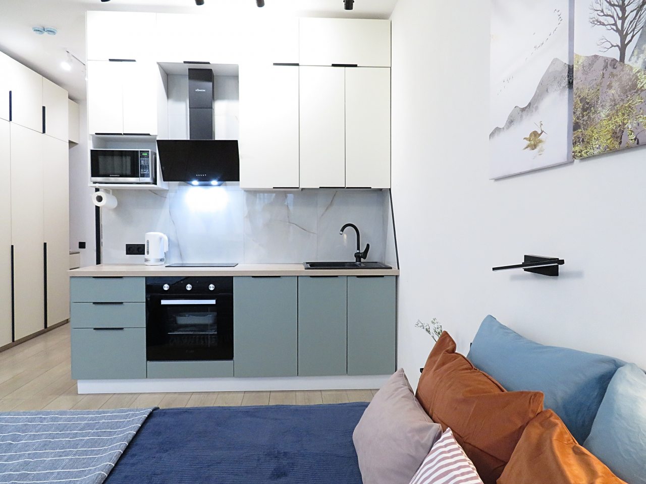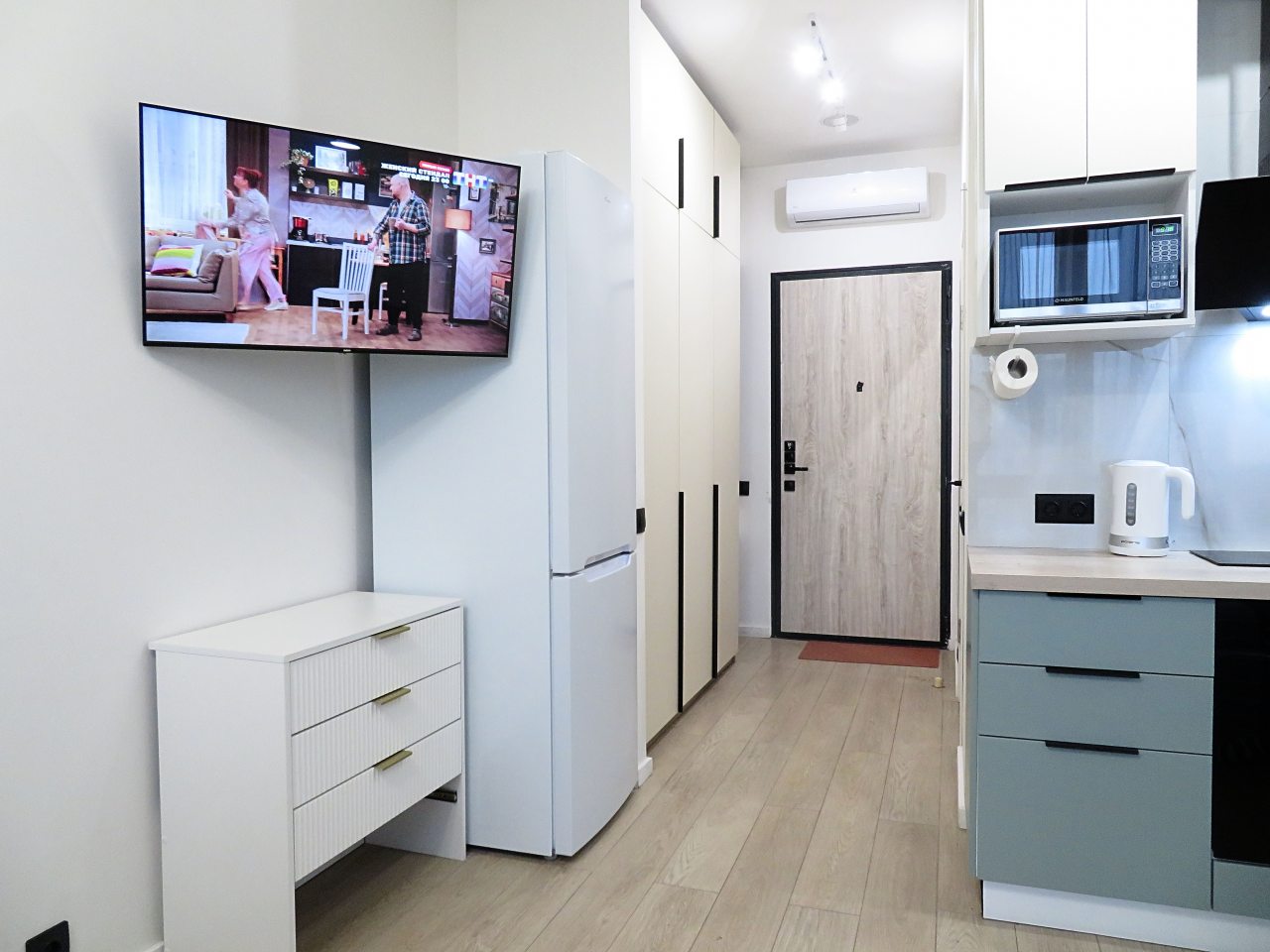 Студия комфортабельная, чистая, есть рабочая техника, мягкая мебель. Хозяева очень приветливые и гостеприимные! Заселились достаточно быстро! В шаговой доступности есть вся необходимая инфраструктура.