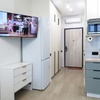 На время визита в Москву мы забронировали онлайн данные апартаменты. Квартира – студия шикарная, современный интерьер в ней продуман до мелочей. Мебель и техника в апартаментах новая, работает отлично. Все пульты с батарейками и включаются приборы с первого прикосновения. Расположен дом с апартаментами недалеко от метро и продуктовых магазинов.