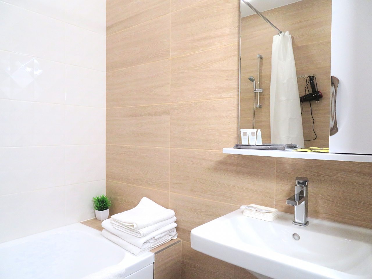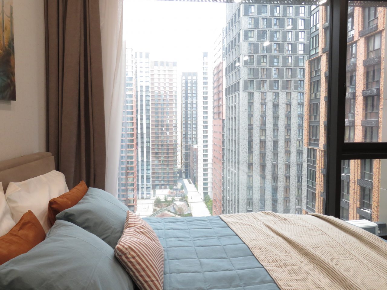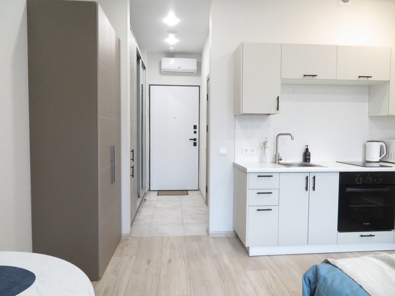 В Москву приезжали на неделю и на это время бронировали апартаменты рядом с метро. Студия новая с хорошим ремонтом. Интерьер спокойный, современный, но без помпезных вычурных элементов. В ванной комнате аккуратно, также все оформлено, как и в комнате. Кухонная зона соединена с жилым пространством. Благодаря присутствующей вытяжки запахи не задерживались. В жилом комплексе есть подземная парковка. Ну а кто без машины - до метро отсюда совсем недалеко.