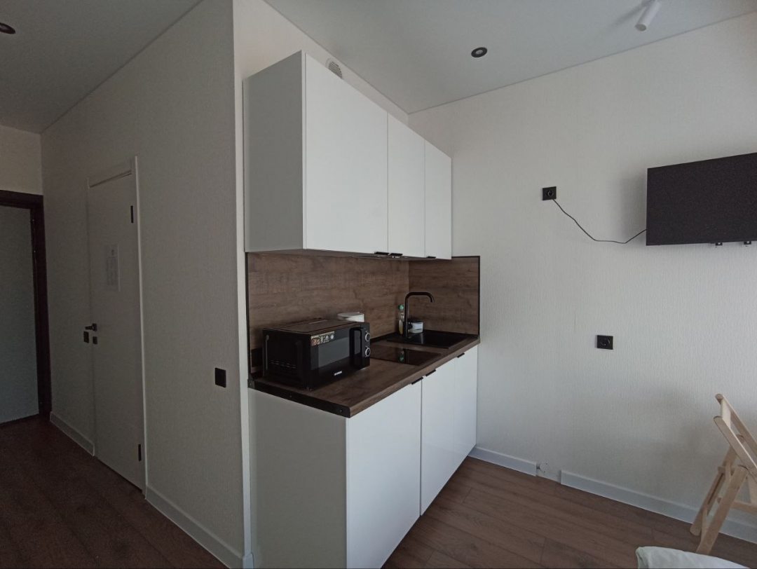 Был в городе недолго, решил снять студию, так мне намного комфортнее. Понравился этот вариант, решил заселиться. Есть и кухонная зона с приборами. что очень удобно. Цена приятная, рекомендую!