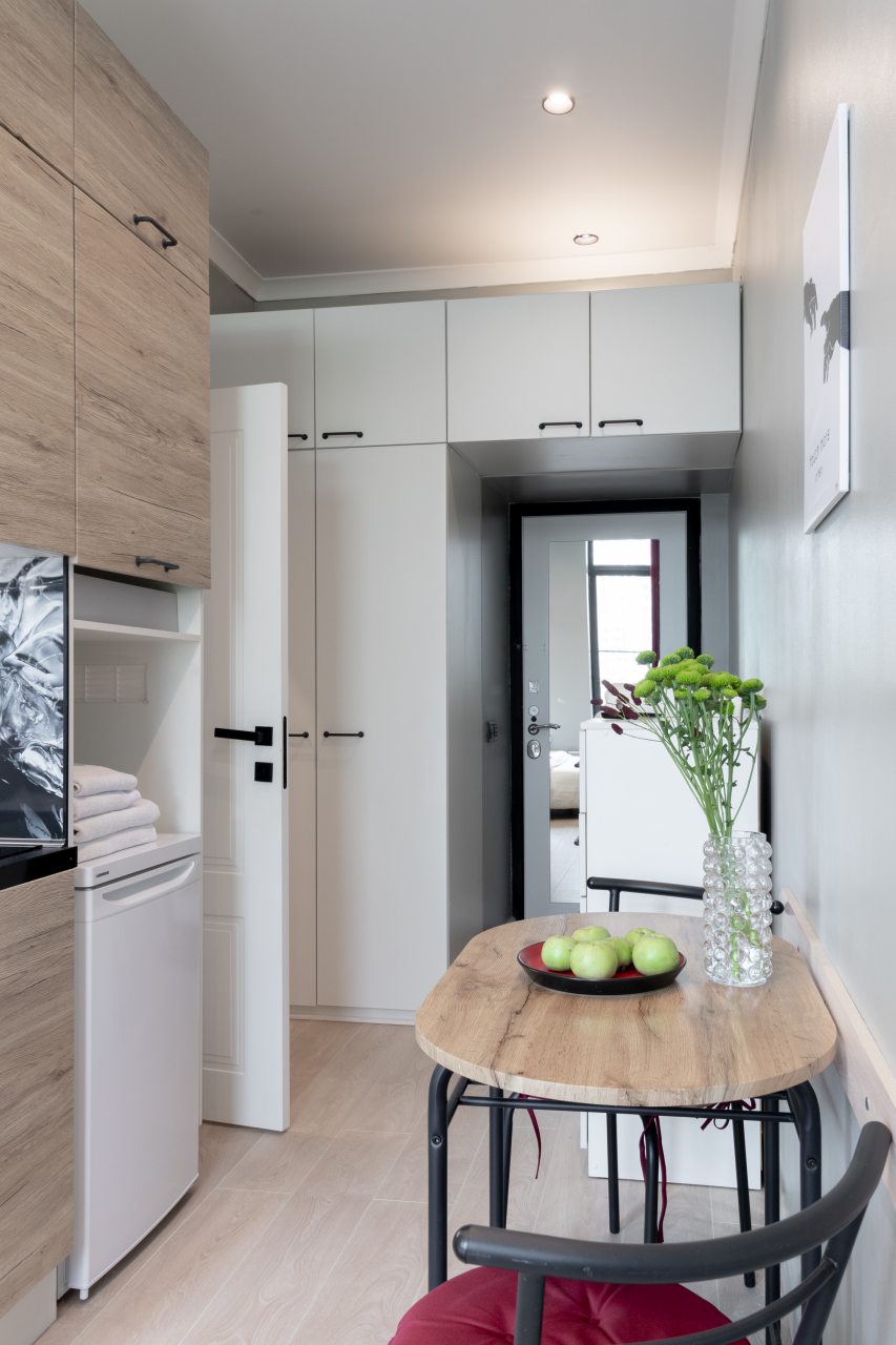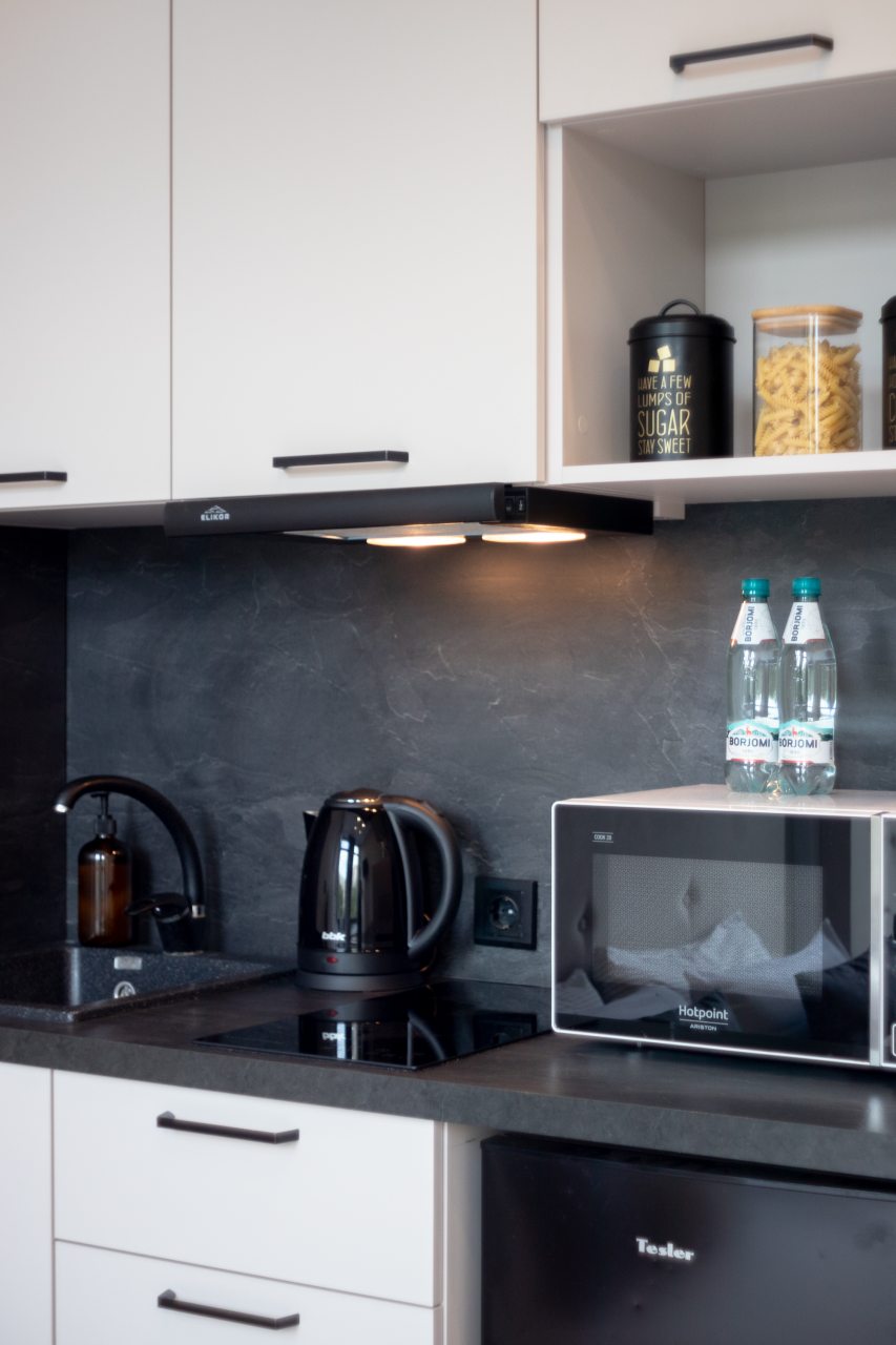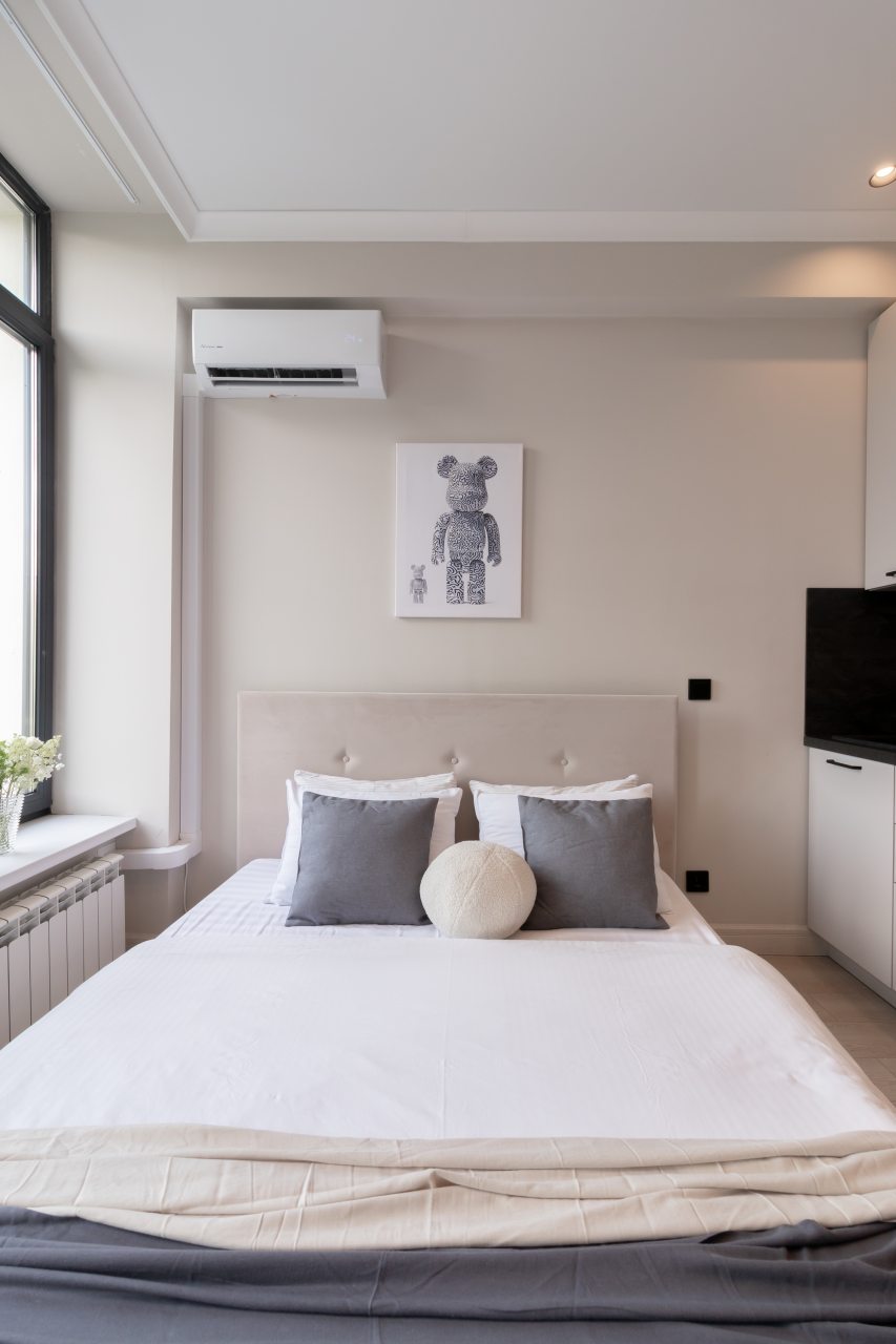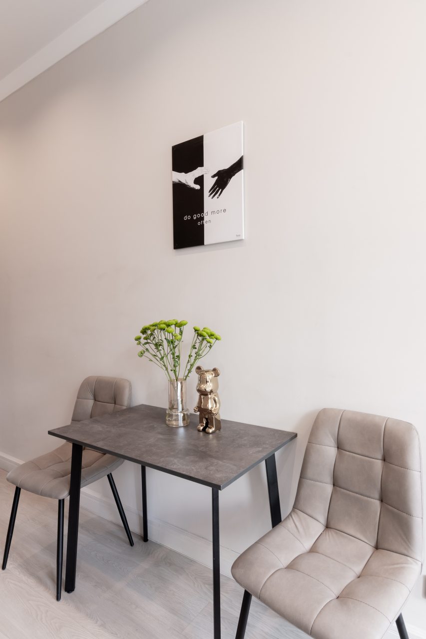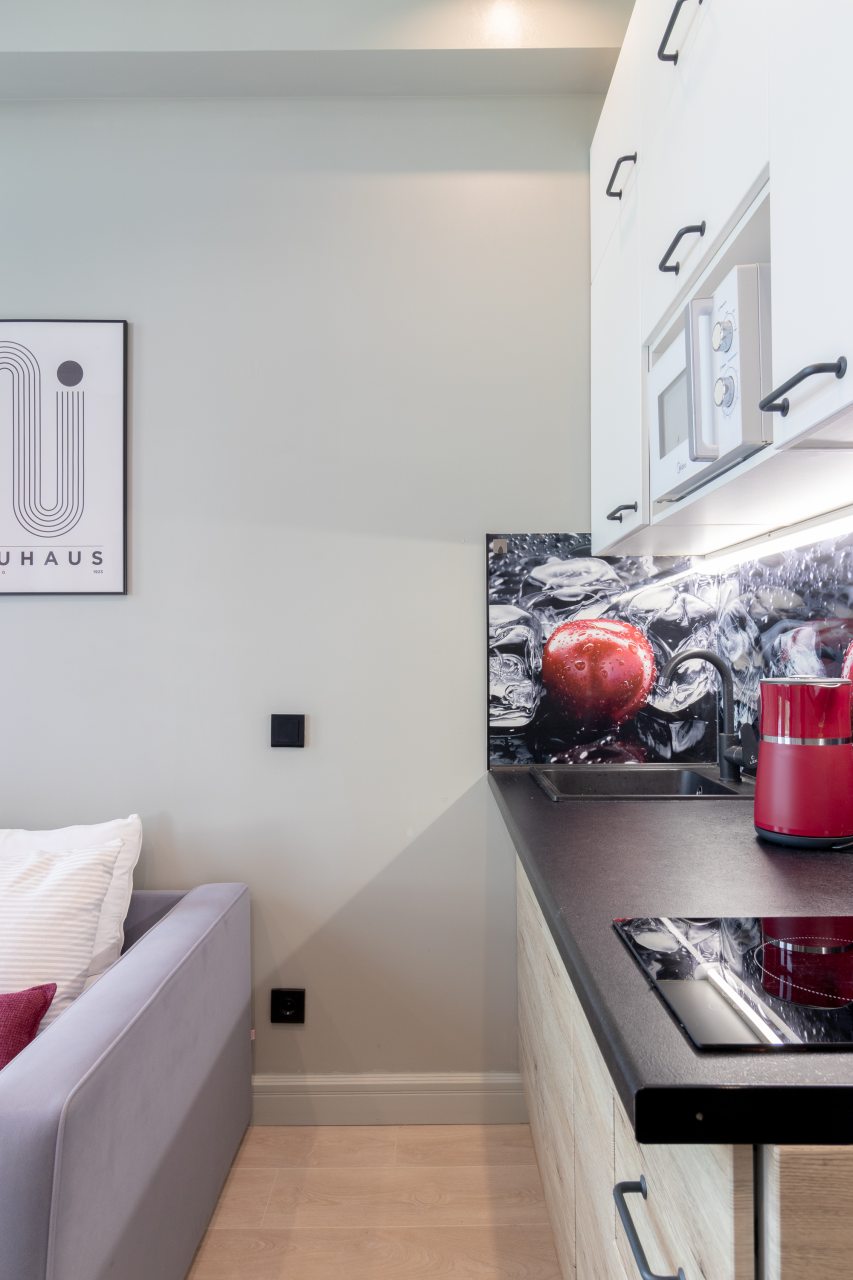 Выбрал апартаменты на сайте бронирования. Немного переживал перед заселением, так как у меня аллергия на пыль. Поэтому сразу всё проверил и остался доволен: порядок здесь поддерживается не только в легкодоступных местах! Так что все остальное уже было хорошо. Я был один, этой студии вполне достаточно для проживания.