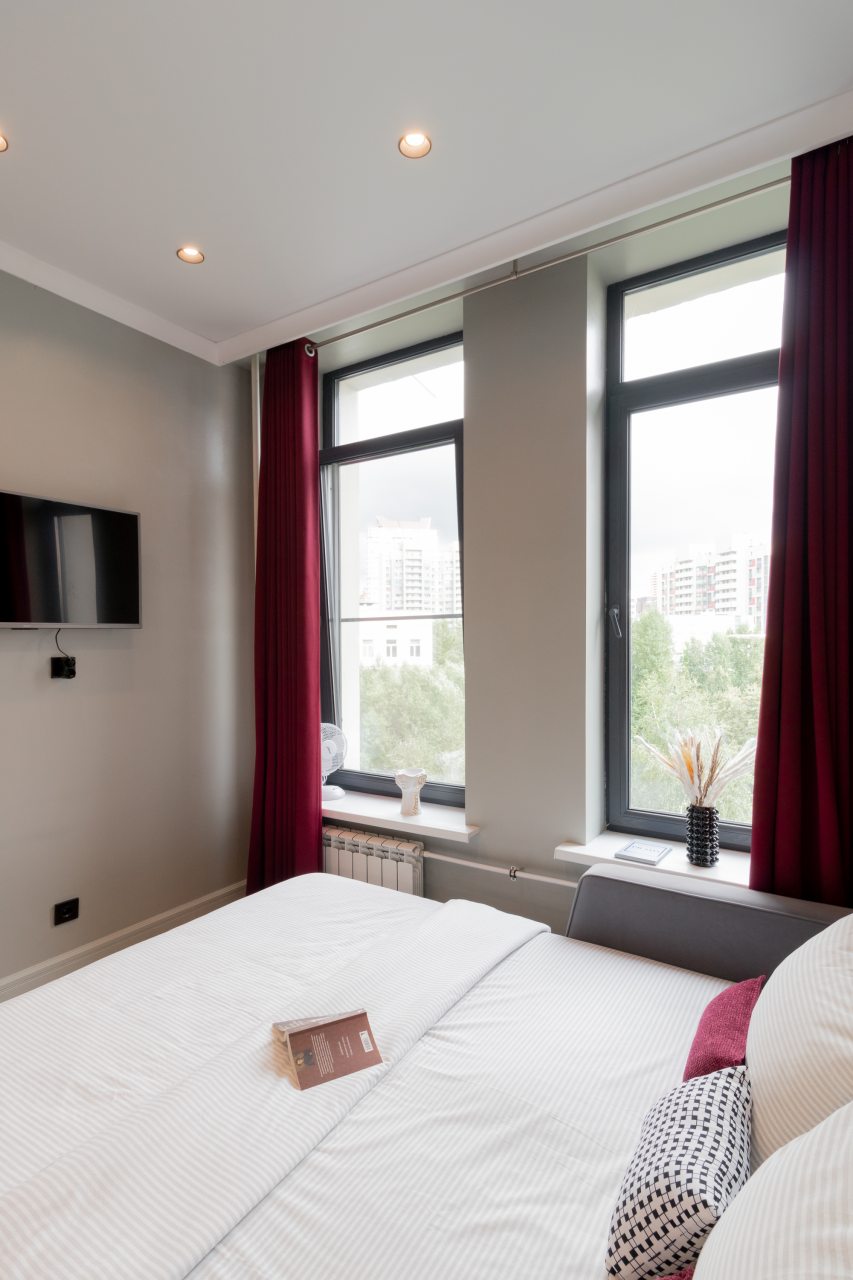 Расположение весьма удобное, рядом находится станция метро, а также множество различных магазинов, возможна бесконтактная регистрация. Номер хоть и небольшой, но очень уютный и в нем есть все, что нужно. Все чисто, постельное белье и полотенца сверкают белизной. Приятно удивило наличие гелей, тапочек, упаковок чая и кофе, и воды на первое время. Мы останавливались втроем в трехместных апартаментах. Для пары-тройки ночевок это отличный выбор по соотношению цены и качества.