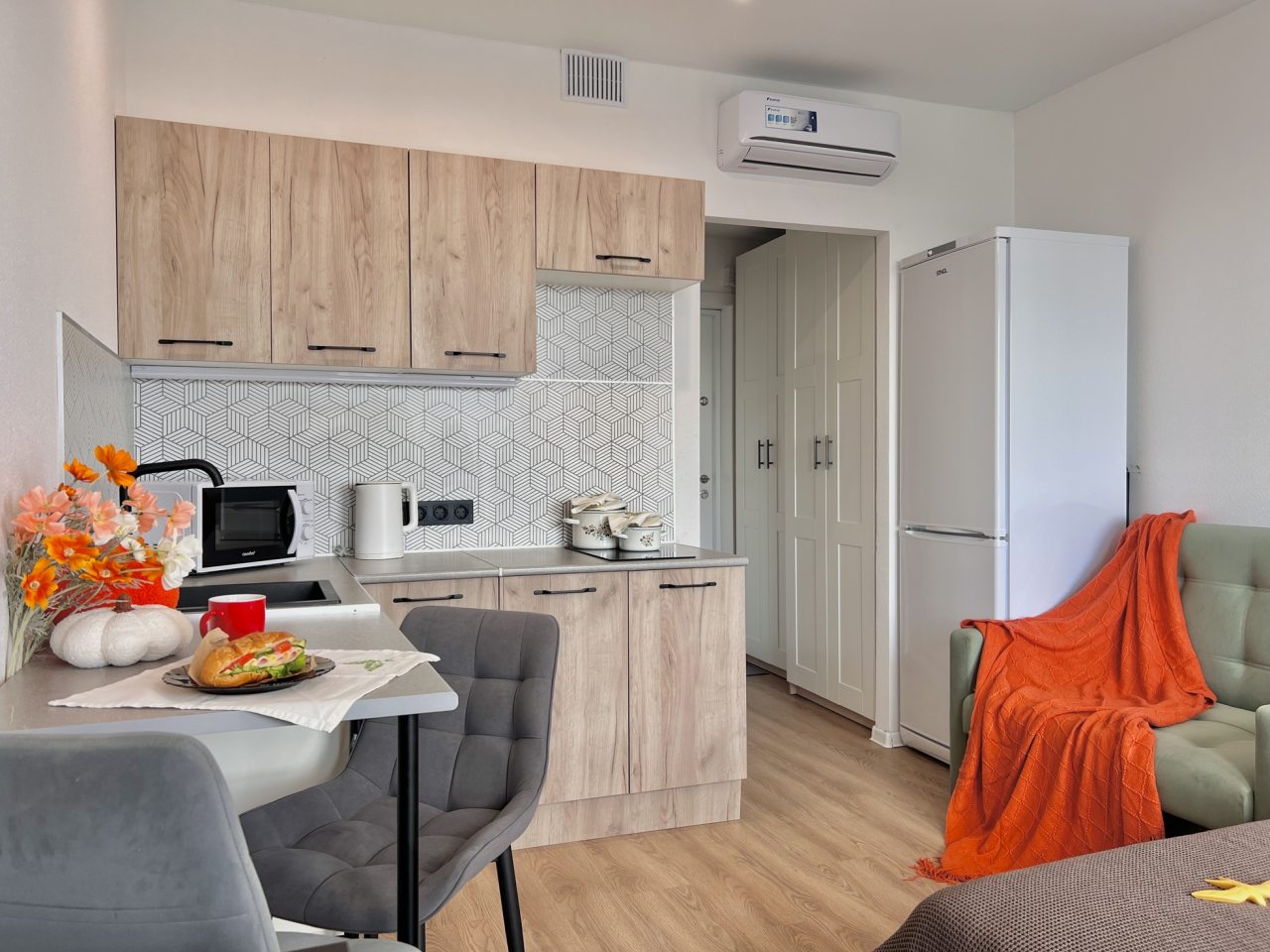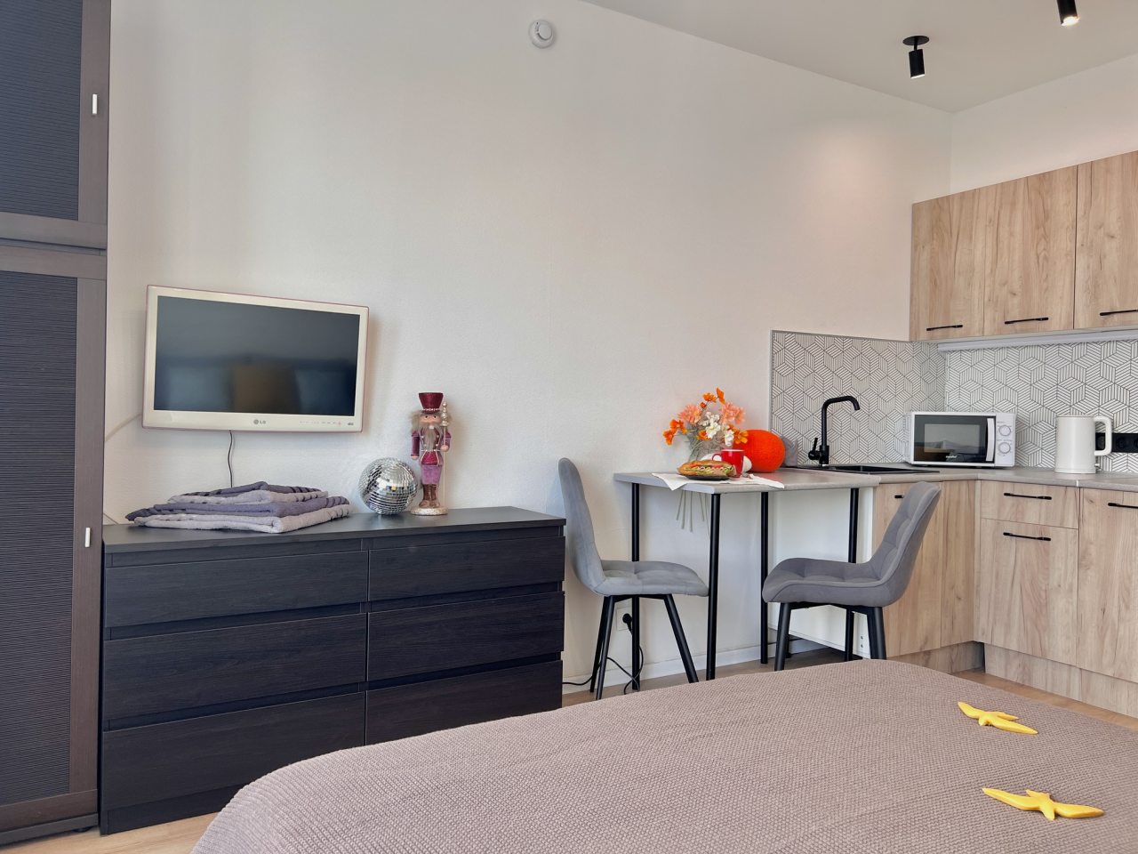 Приятный в общении менеджер, удачное расположение и шикарный интерьер студии. Очень понравилось, как обставлена и оборудована квартира, все детали продуманы до мелочей. Большое окно, удобная кухонная зона, отличная ванная комната с большой раковиной. Мои рекомендации этому месту.