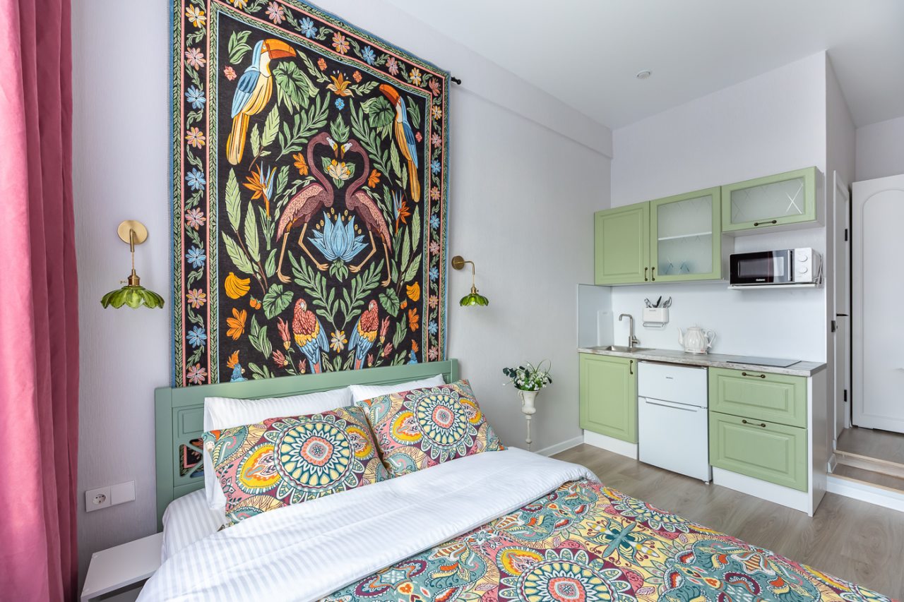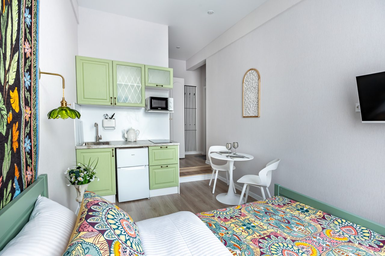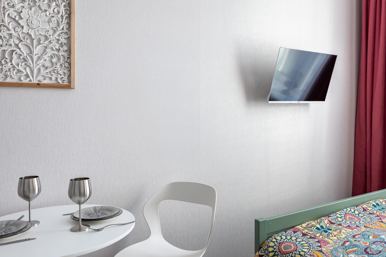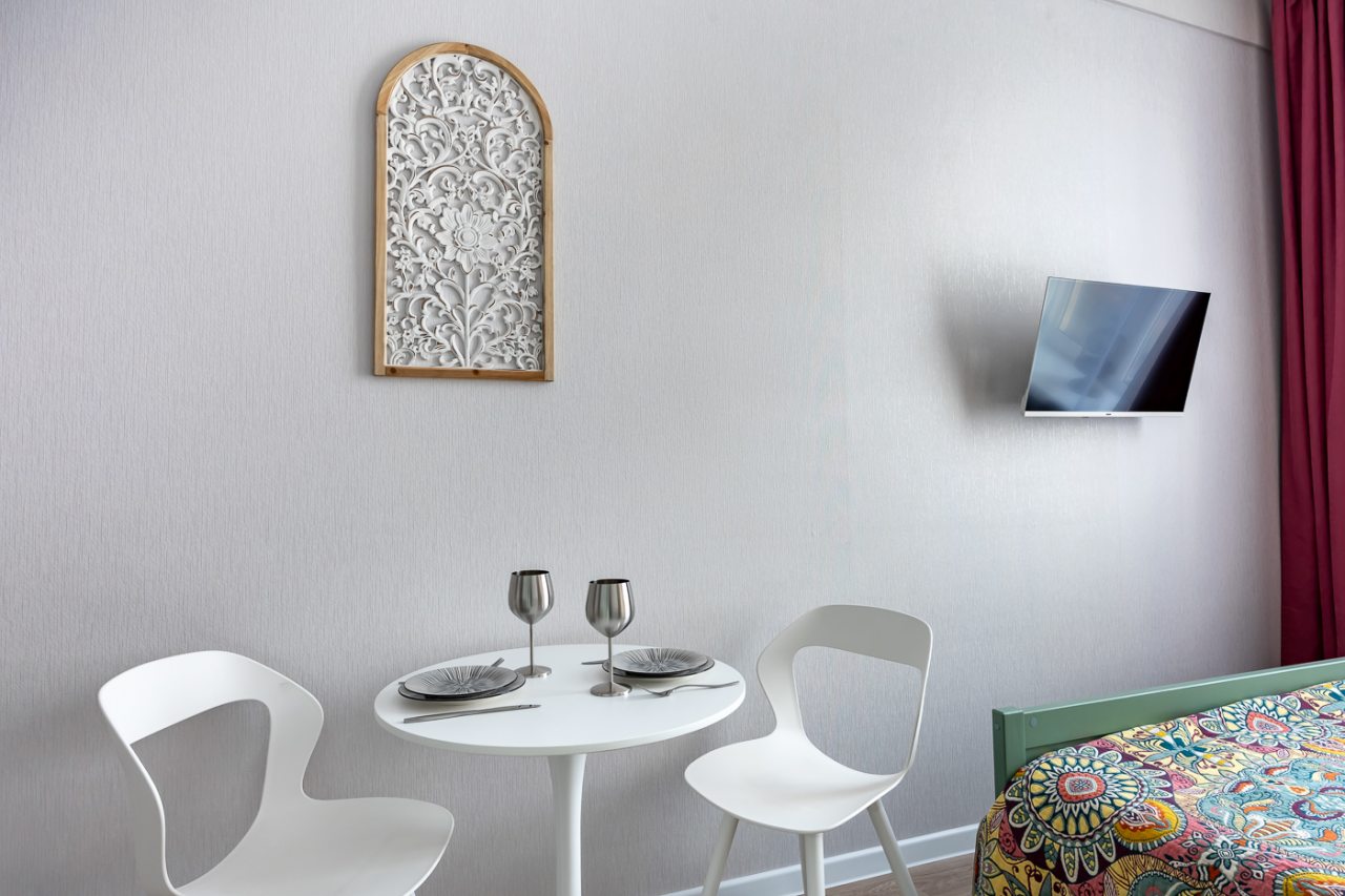 Апартаменты порадовали своей функциональностью и хорошим оснащение. Имеется все самое нужное, чтобы комфортно провести отдых и не тратить свои средства на мелочи. По приезду отметили яркий и красивый дизайн, чистоту помещения. То, что квартира небольшая мы знали уже, когда бронировали, поэтому это нас не смутило, места на двоих хватило с лихвой.