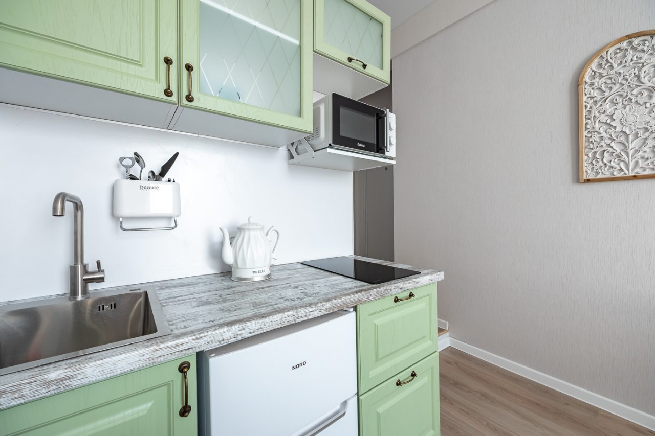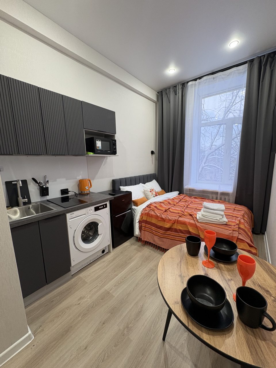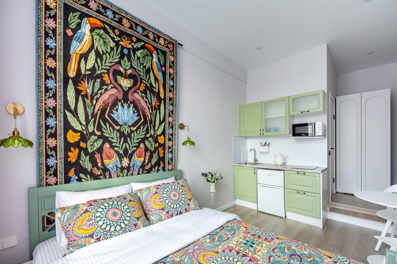 Апартаменты порадовали своей функциональностью и хорошим оснащение. Имеется все самое нужное, чтобы комфортно провести отдых и не тратить свои средства на мелочи. По приезду отметили яркий и красивый дизайн, чистоту помещения. То, что квартира небольшая мы знали уже, когда бронировали, поэтому это нас не смутило, места на двоих хватило с лихвой.