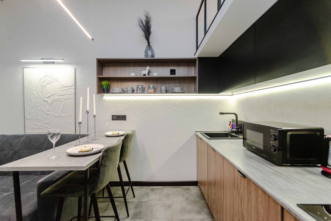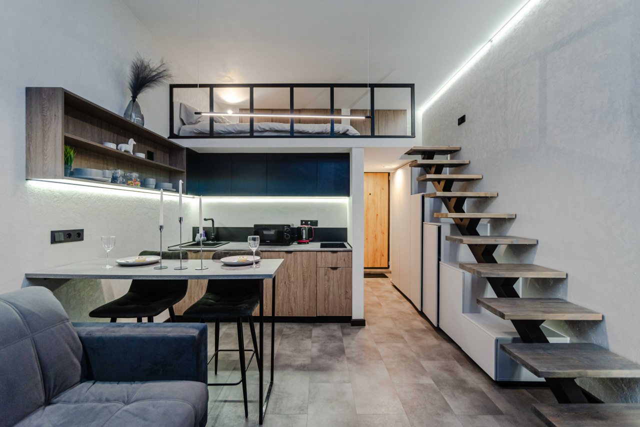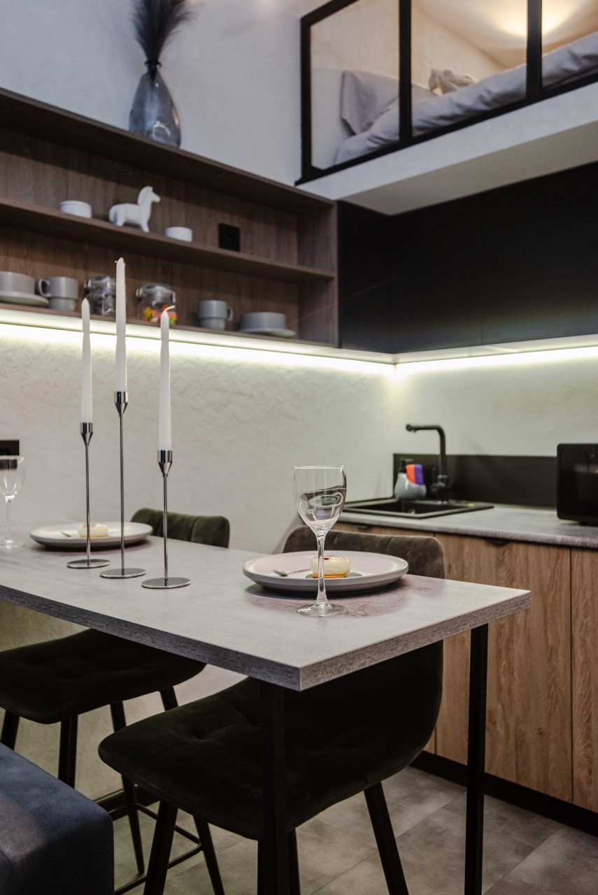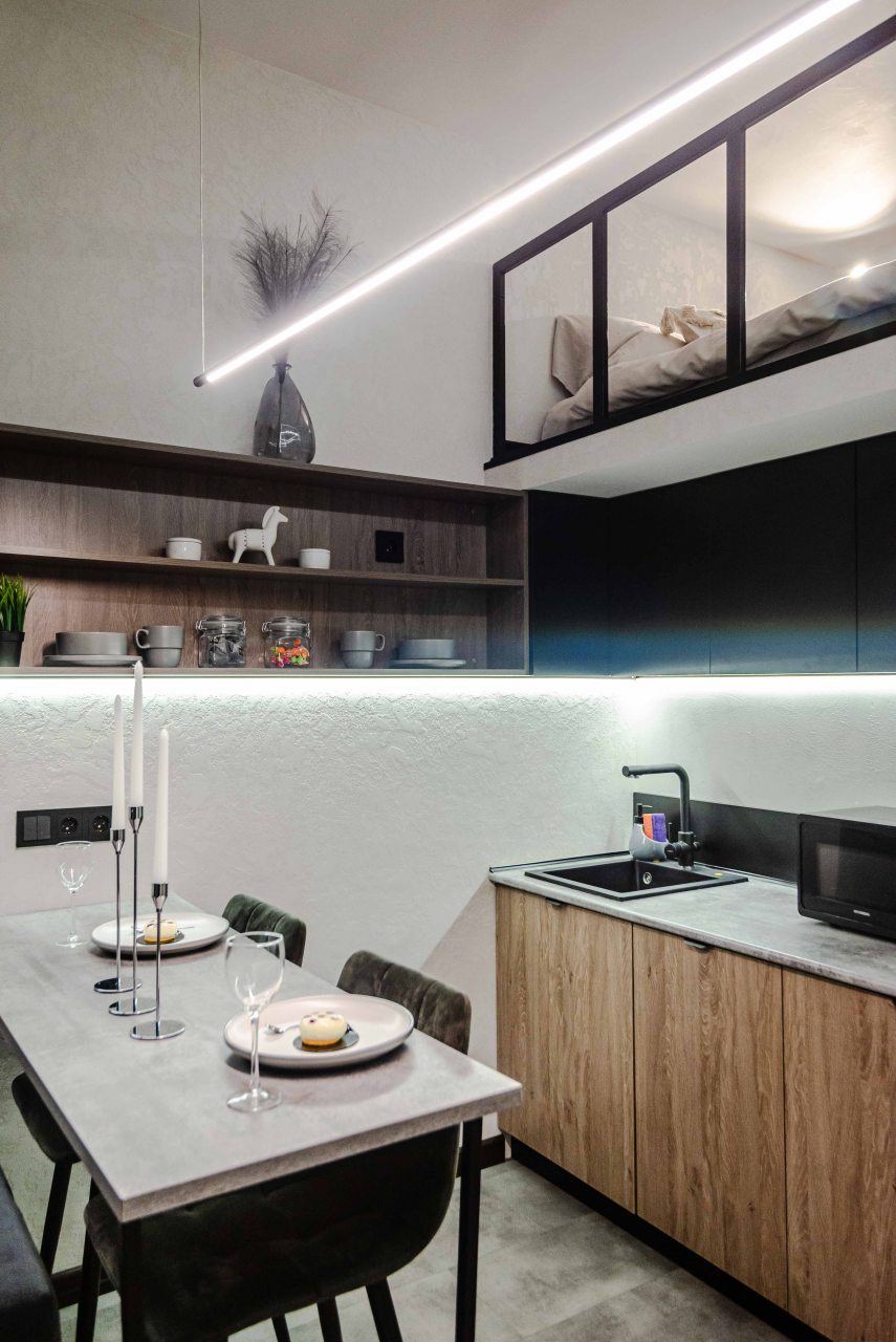 Просто суперские апартаменты. И красивые, и удобные. Несмотря на то, что кровать под потолком, все равно очень комфортно спать, места и воздуха много. Есть мини-кухня со всей техникой нужной для готовки. Метро близко.