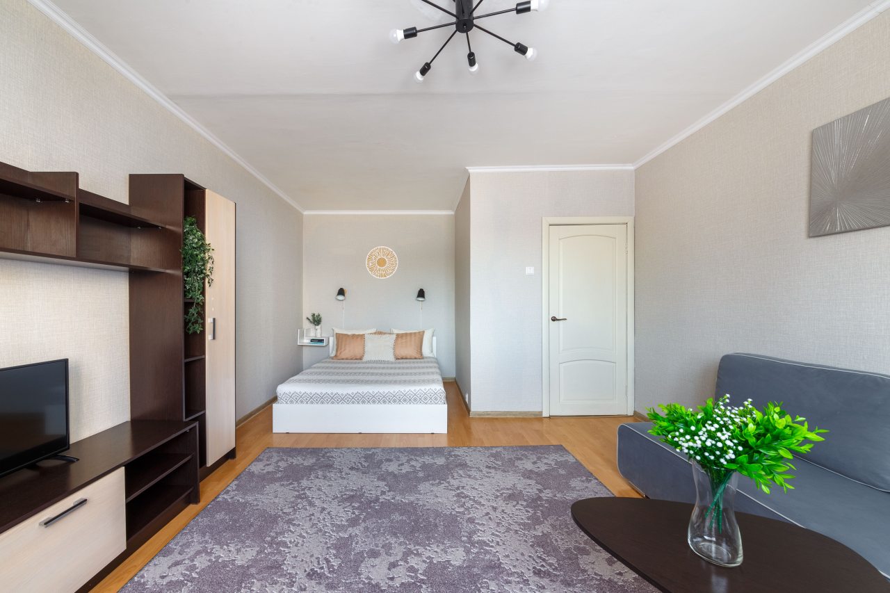 В квартире жили почти неделю, нас все устроило. Есть спальные места, оборудованная всей необходимой техникой кухня. Можно спокойно готовить еду. Диван удобный и большой, спина не болела после него. Поблизости есть магазинчики и кафе.