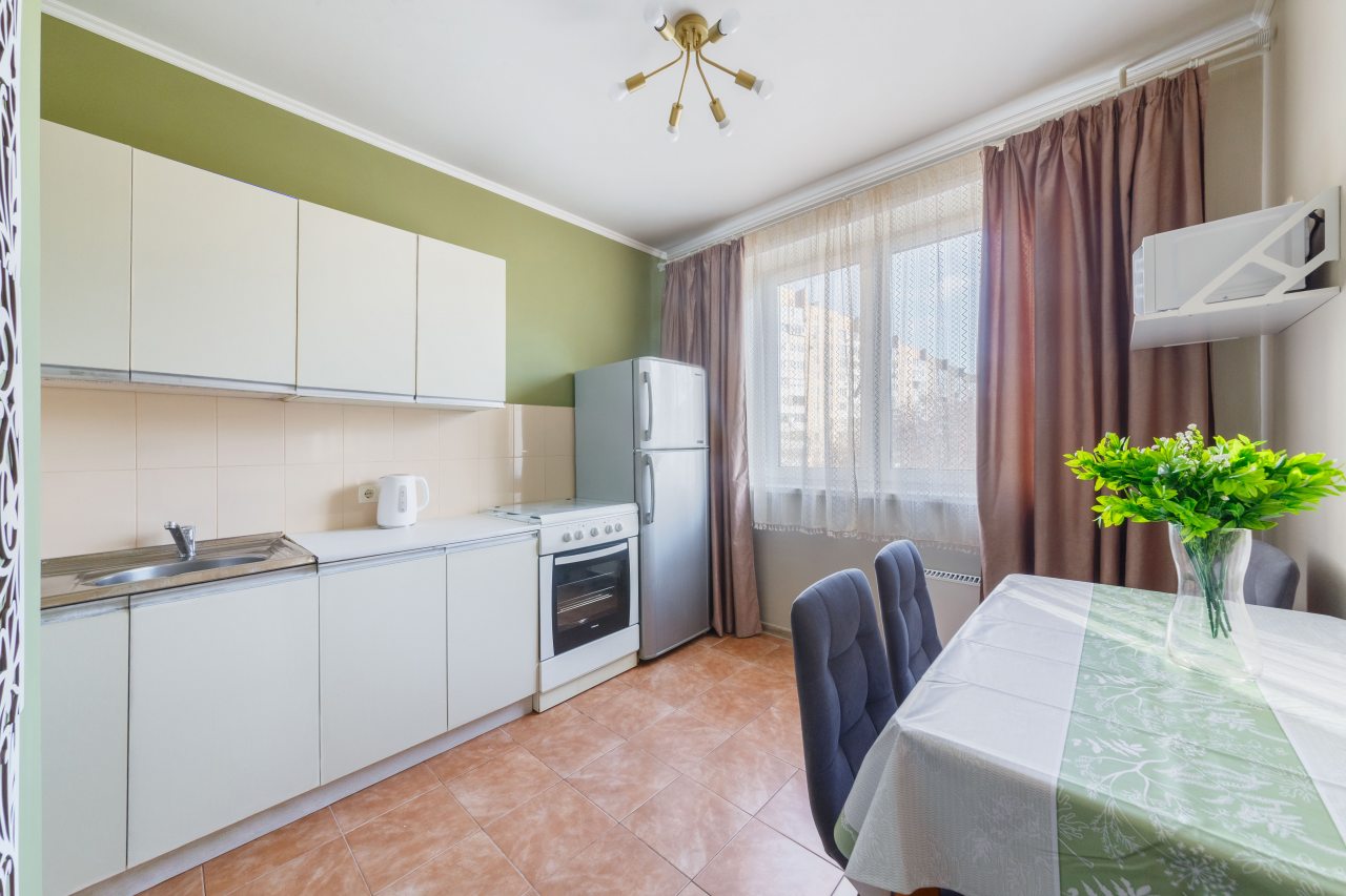 Мы брали данные апартаменты для временного проживания в Москве. Ехали на 2 недели, на гостинице мы просто бы разорились. Поэтому выбрали вариант съема квартиры. Условия оказались очень даже неплохими за эти деньги. Находятся апартаменты рядом с метро. Фен, стиральная машина, чистящие и гигиенические средства присутствовали. Кухня укомплектована посудой, ее достаточно, как и техники. Готовили самостоятельно, хотя конечно успели посетить и местные кафе. Впечатления положительные после проживания здесь.